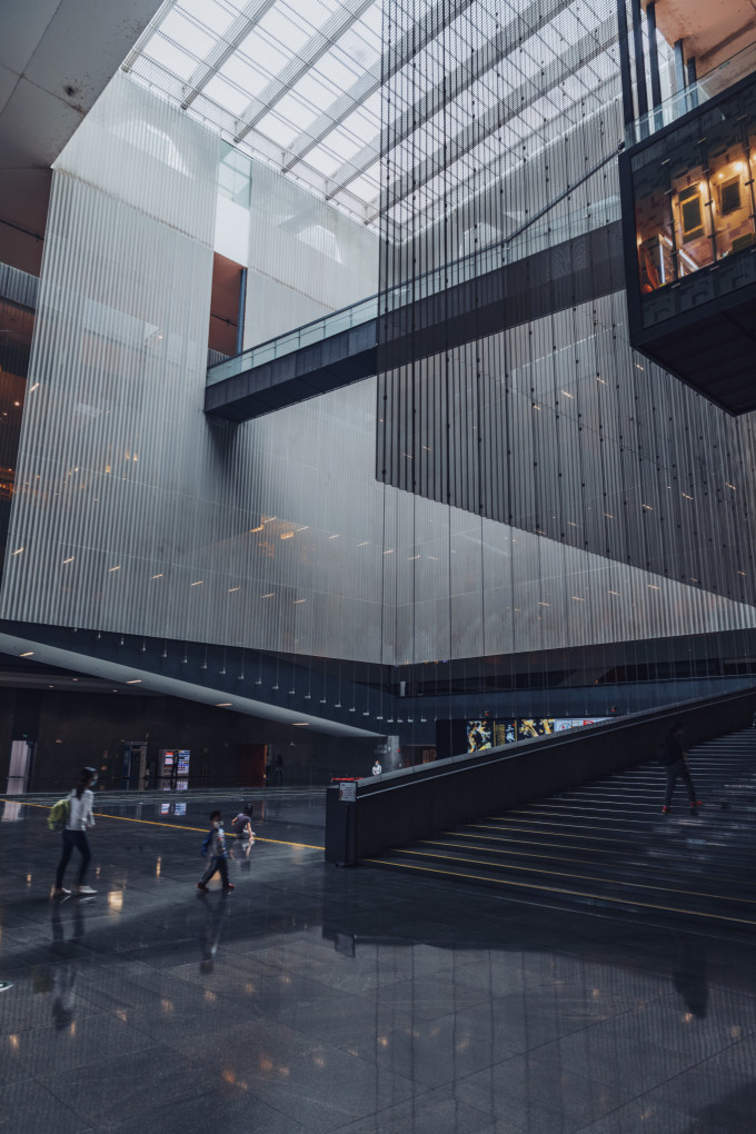在大剧院最下面一层,逛一逛,透着各种角度,可以拍到很多张透着小蛮腰的照片。