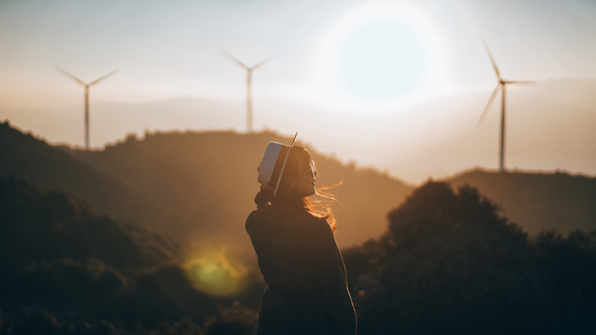 风车山上的浪漫日落。