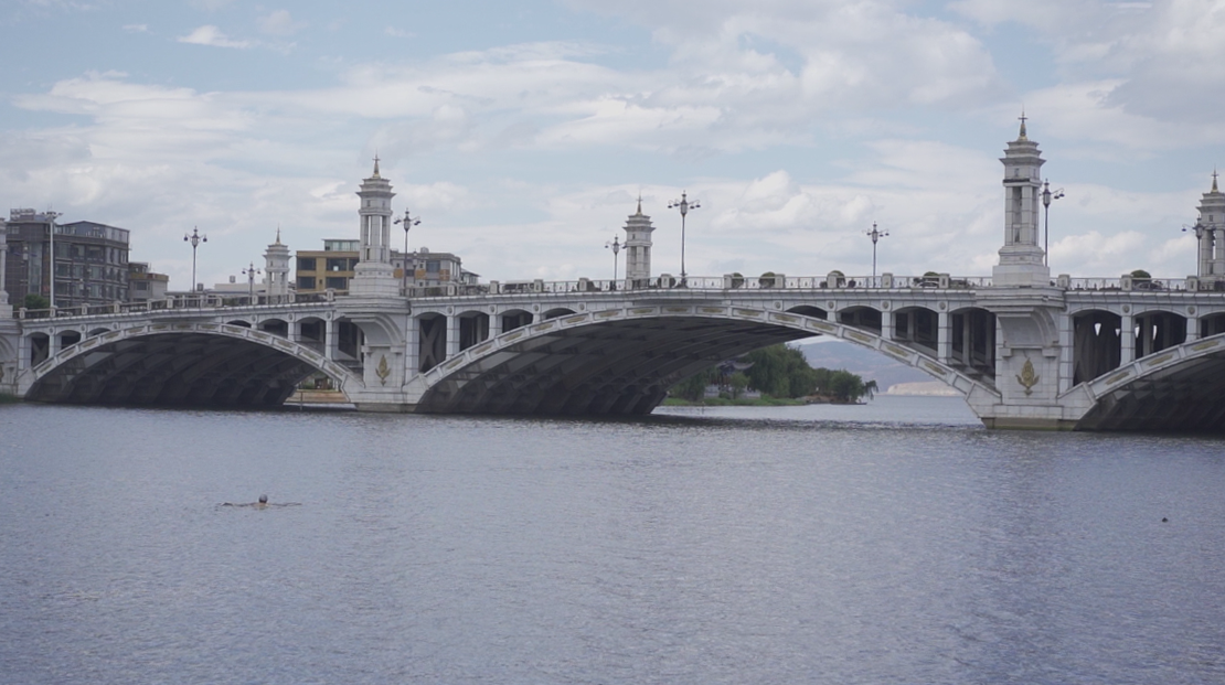 大桥的这一侧是洱河上唯一允许游泳的地方