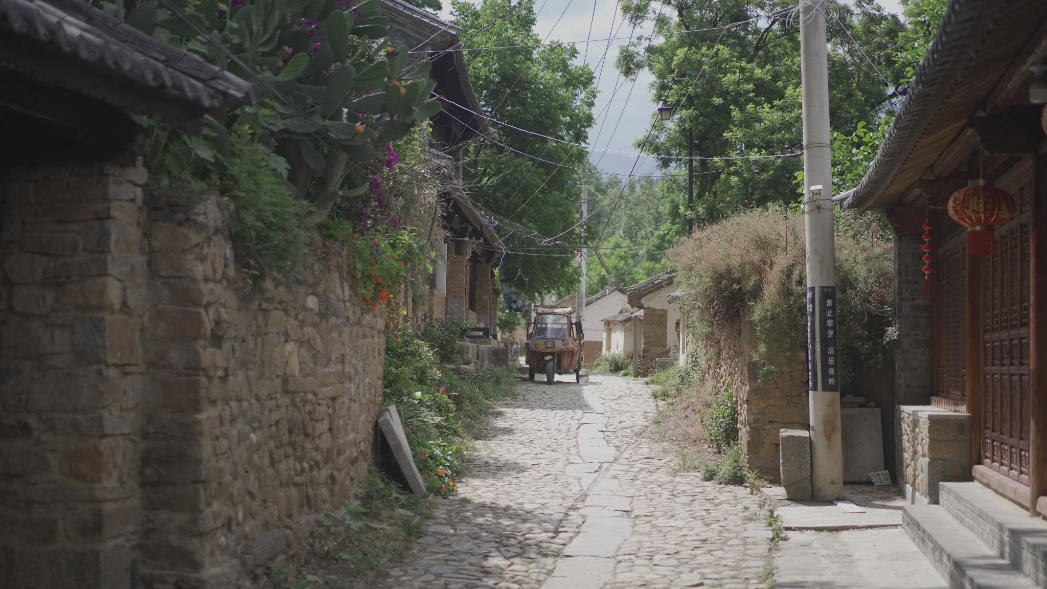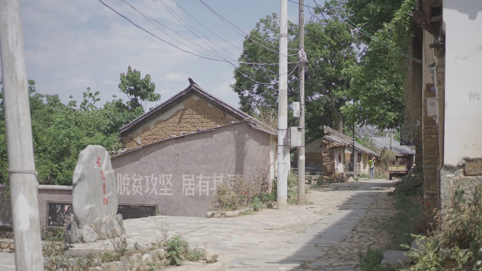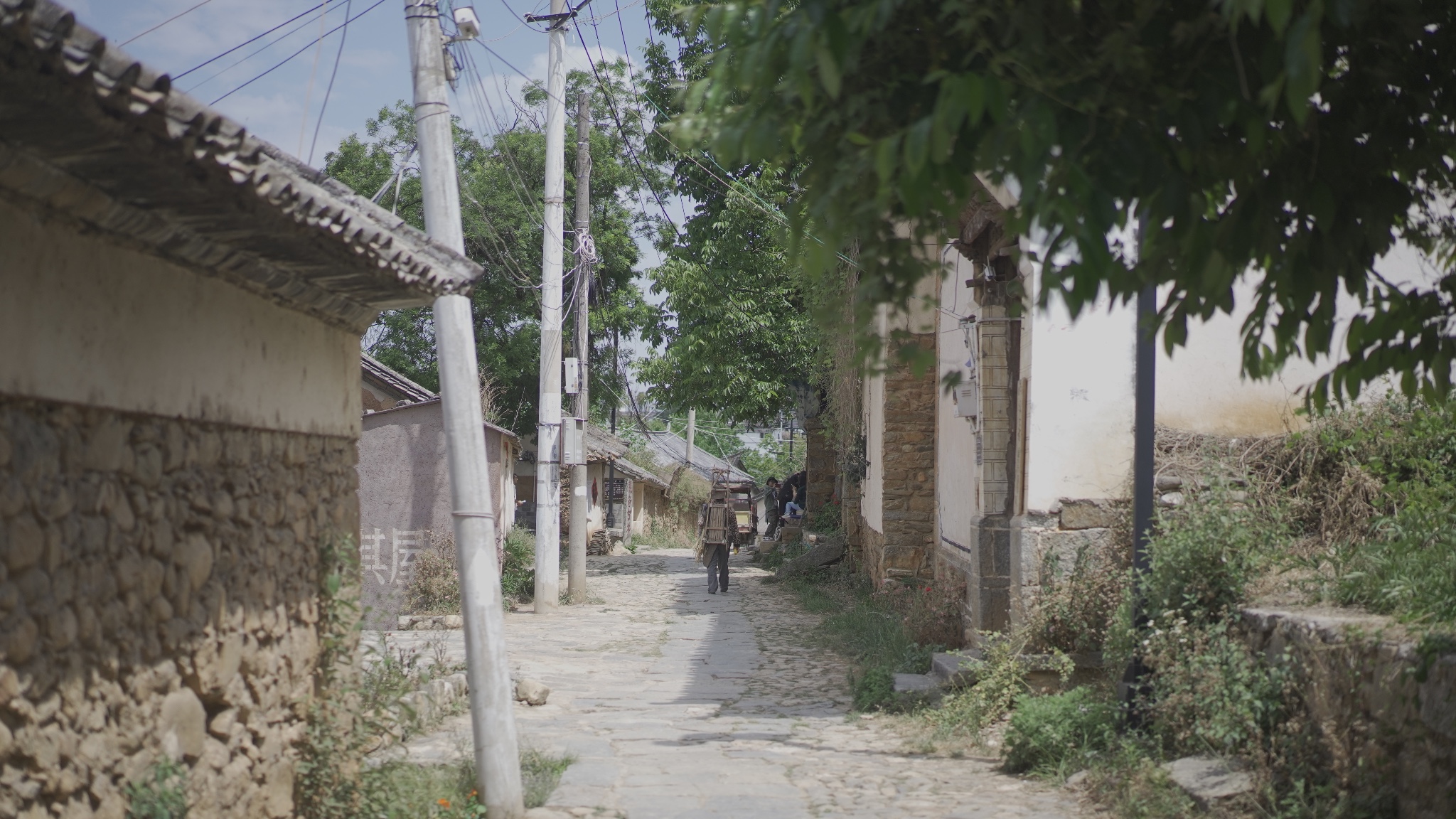 石板路一直延伸到村落的尽头,裸露着的电线杆支棱起从前关于夏日的记忆