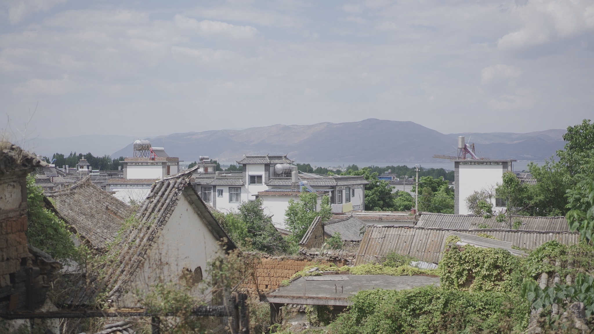 走到村落的高处,没有遮挡的部分远远可见洱海。