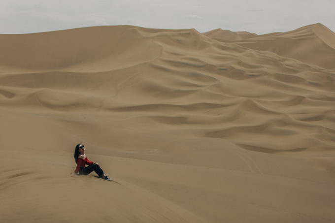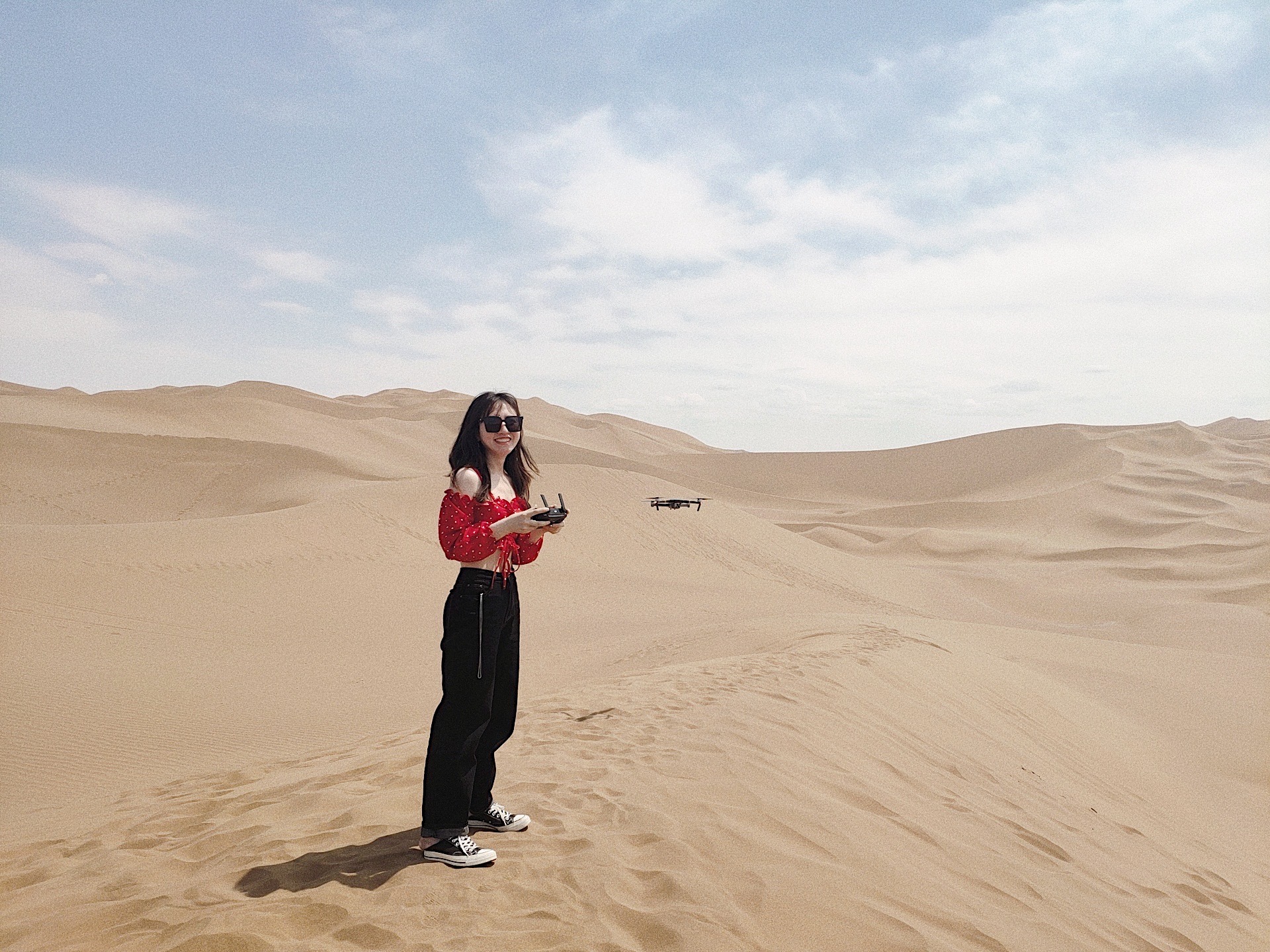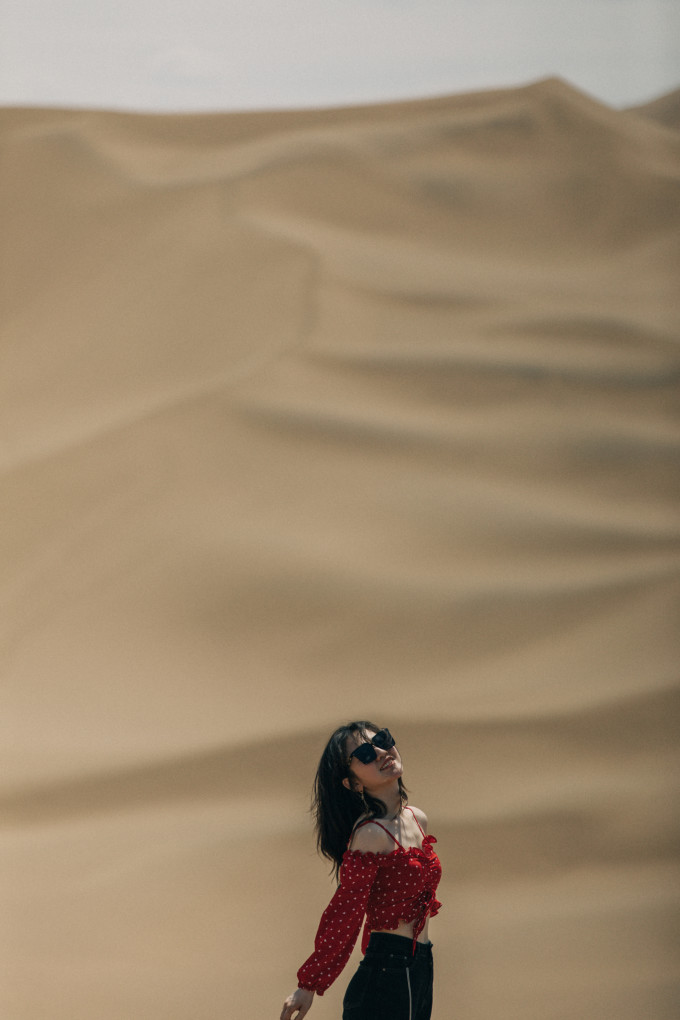 想要拍到没人没脚印的地方就一定要坐他们的越野车进入到沙漠腹地,然后还要徒步翻越几座沙丘才可以,短短的两个小时时间我们已经干完了一瓶防晒喷雾,太阳毒到辣眼睛,我为了省60块钱的脚套钱生生的把脚底板烫糊了