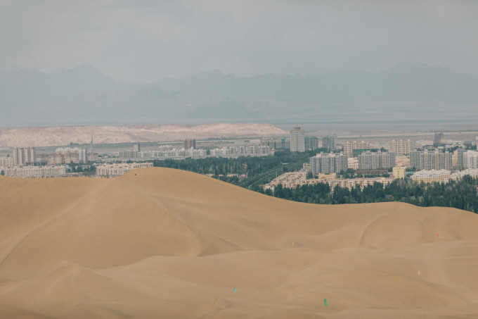 库姆塔格沙漠位于新疆吐鲁番市鄯善县城区南部,距离吐鲁番市区90km,是中国第三大沙漠,也是世界上距离城市最近的沙漠。即使在沙漠腹地还是能遥望到外边的城市,后来我听包车的司机说,只要是晴天再往深处走百分之80的几率可以看到“沙漠海市蜃楼,”呈现的是丝绸之路的场景。