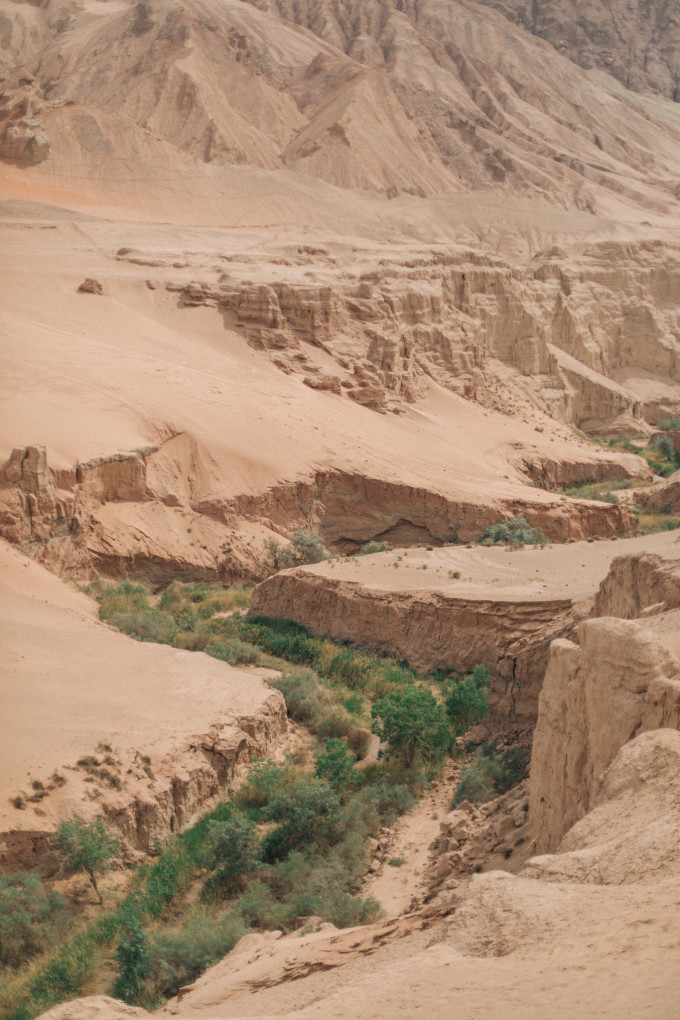 库车作为走和田那段沙漠公路的必经城市,我们却意外在这里感受到了美国西部的狂野峡谷,去天山大峡谷的路上可以看到很多地貌,走进峡谷,两旁的岩壁满是曾被河流冲刷的痕迹。