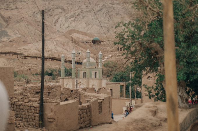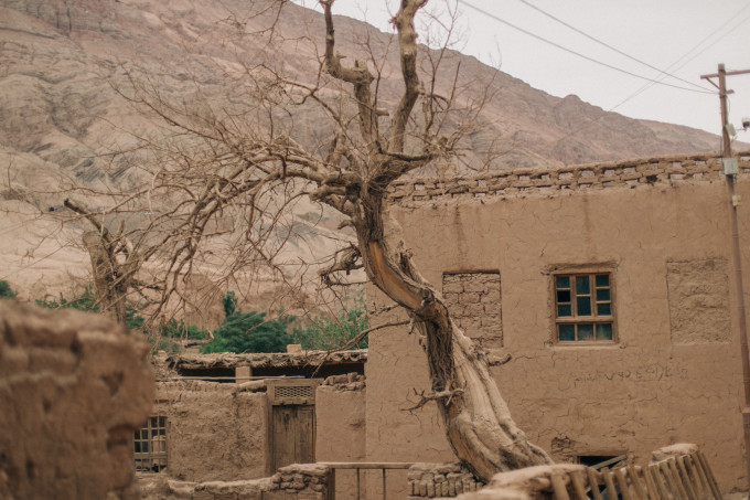 麻扎村非常小,房子和远处的山脉融为一体,在高温的煎烤下显的没有生机