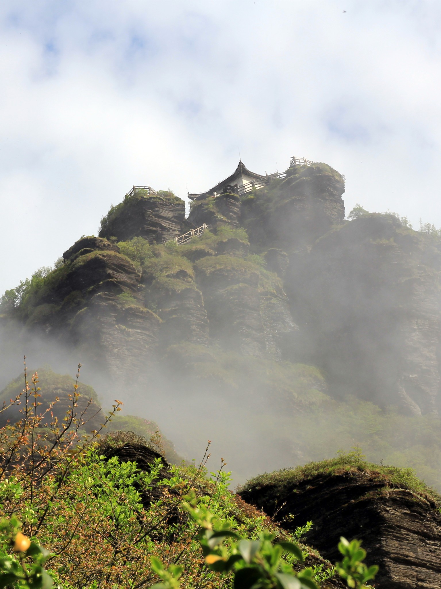 梵净山老金顶(燃灯殿)浮云缭绕如仙境