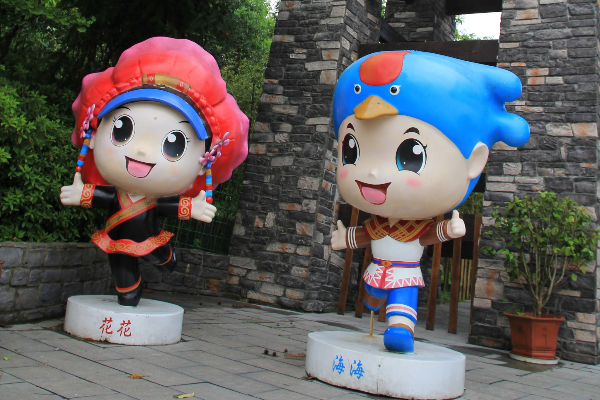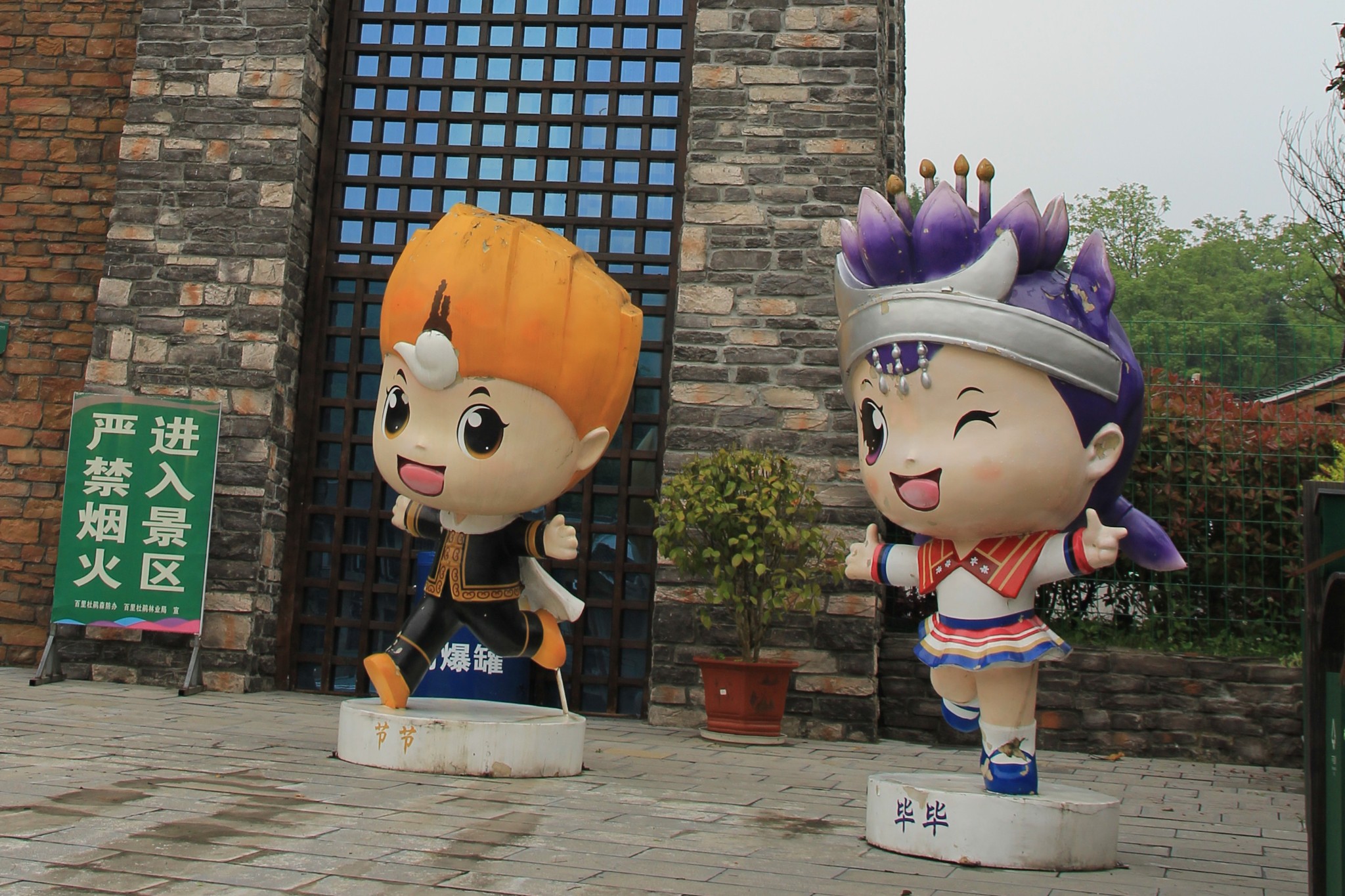 大门两侧各有两个少数民族卡通娃娃十分可爱!猜猜他们都是哪个民族的。