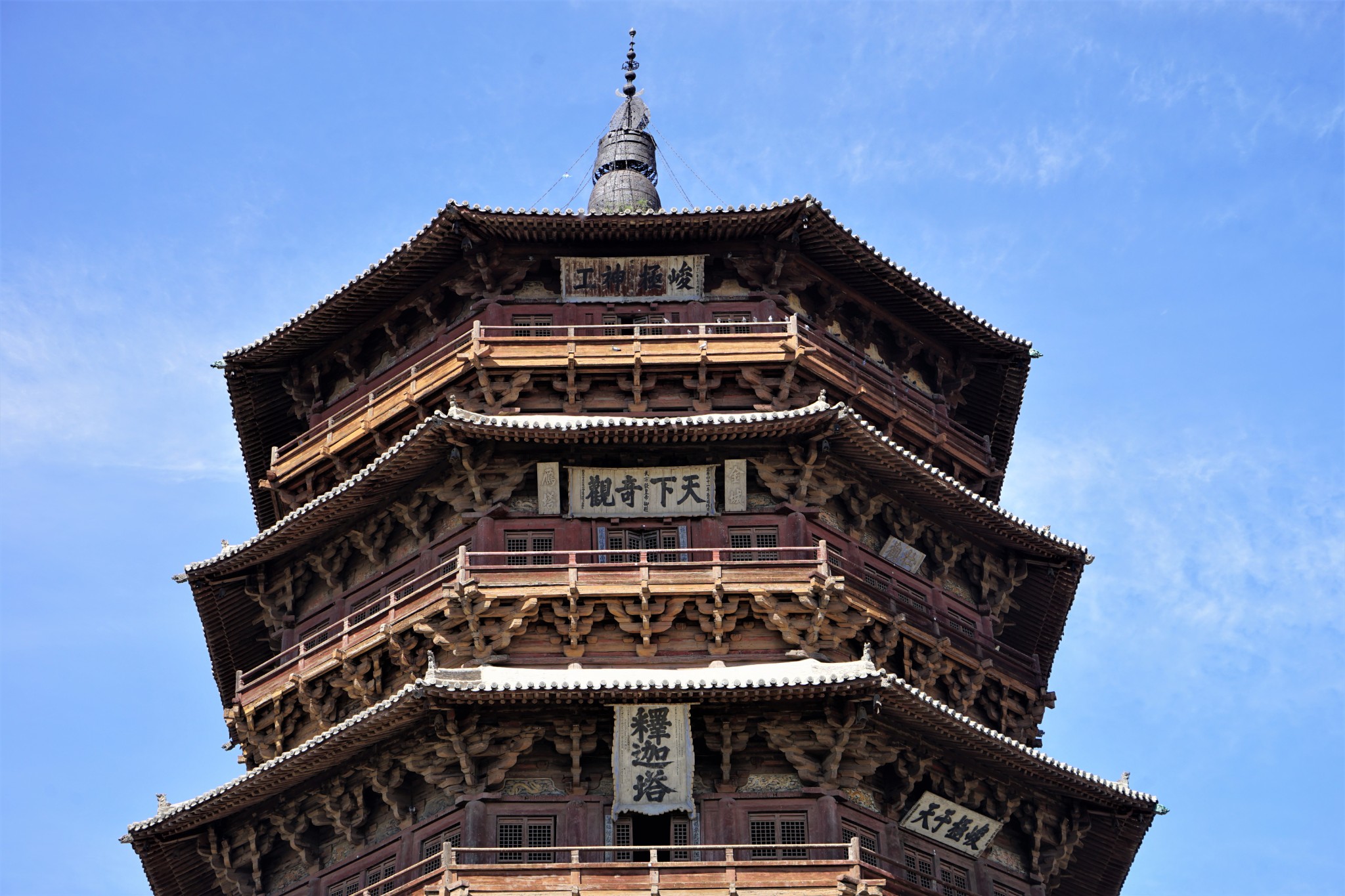 千年间,无数次电闪雷击,强震不倒、炮击不毁、雷击不焚,被誉为“中国第一木塔”。