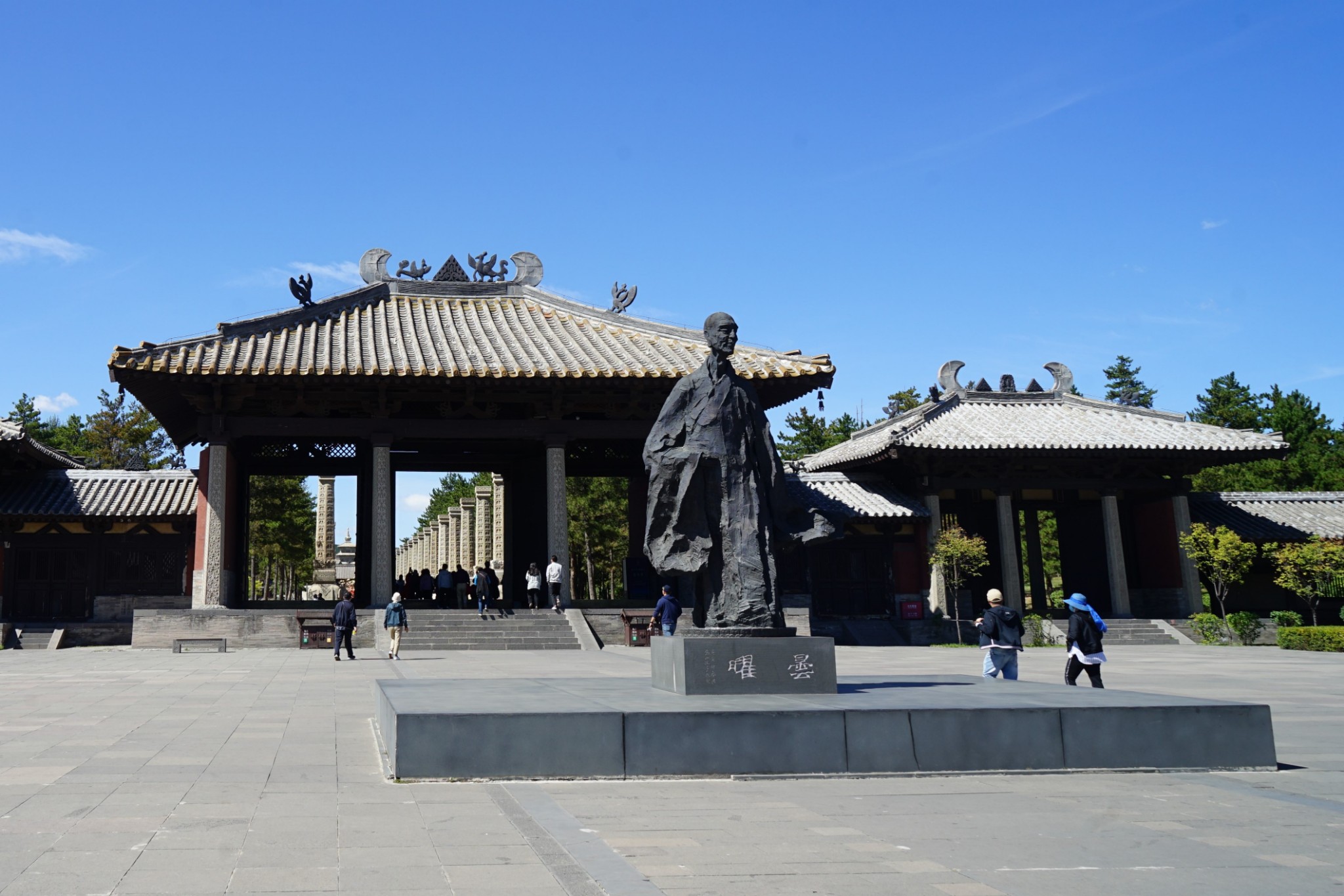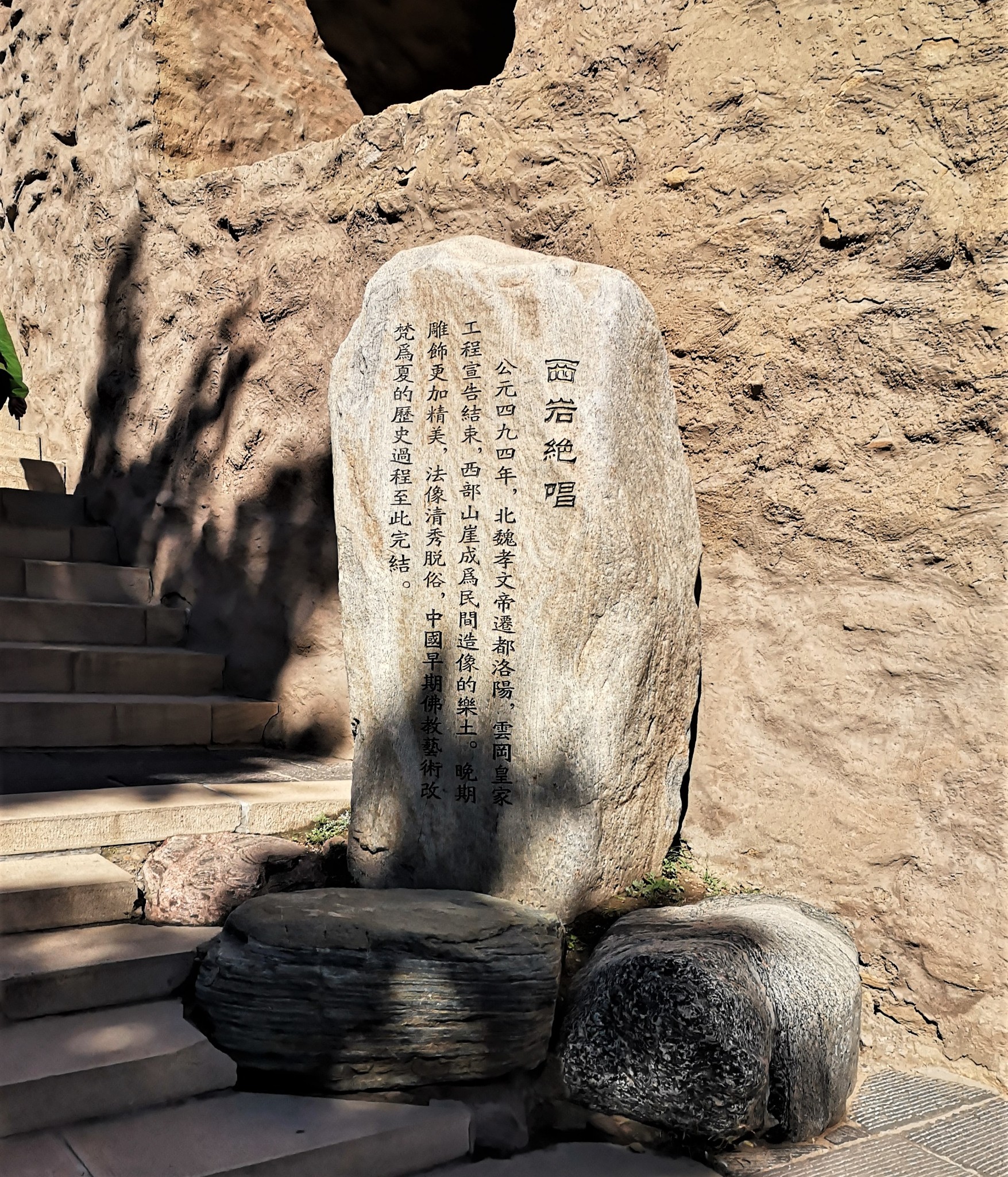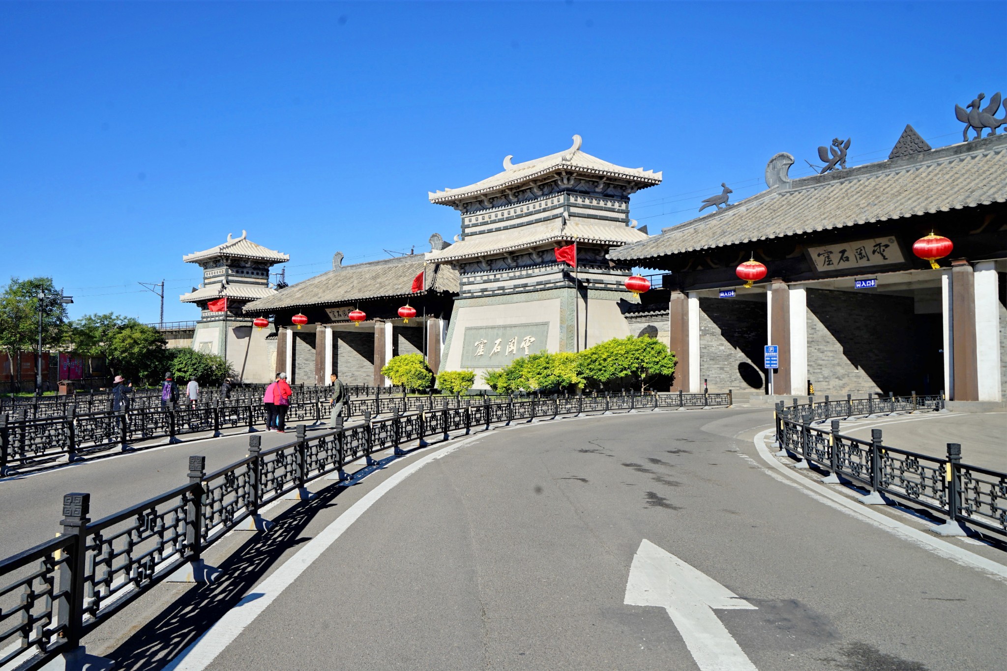云冈石窟进门就是 “昙曜广场” 。广场中央是北魏高僧 “昙曜大师” 的全身塑像。就是在他的主持下,最先开始了云冈石窟的开凿。