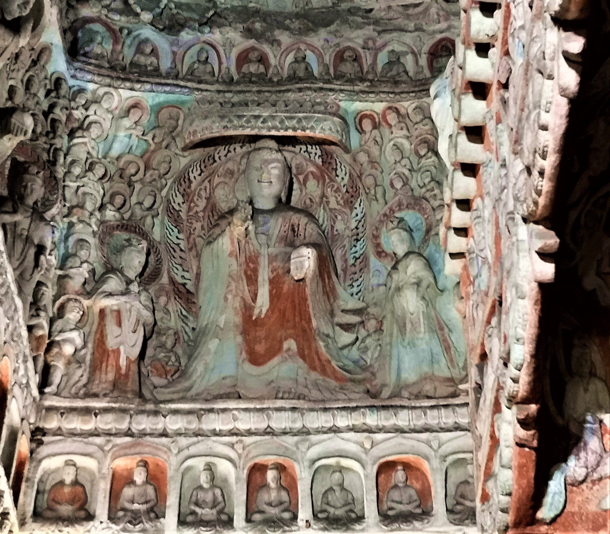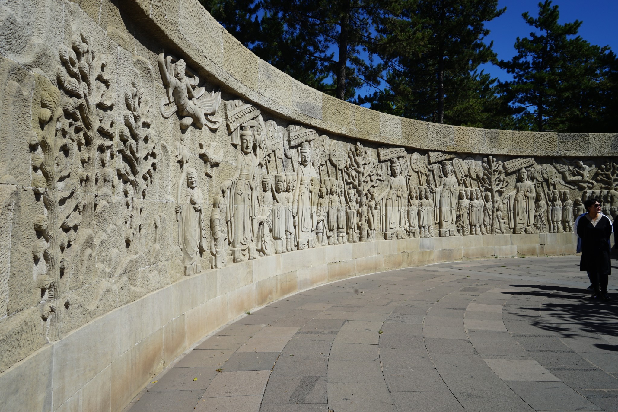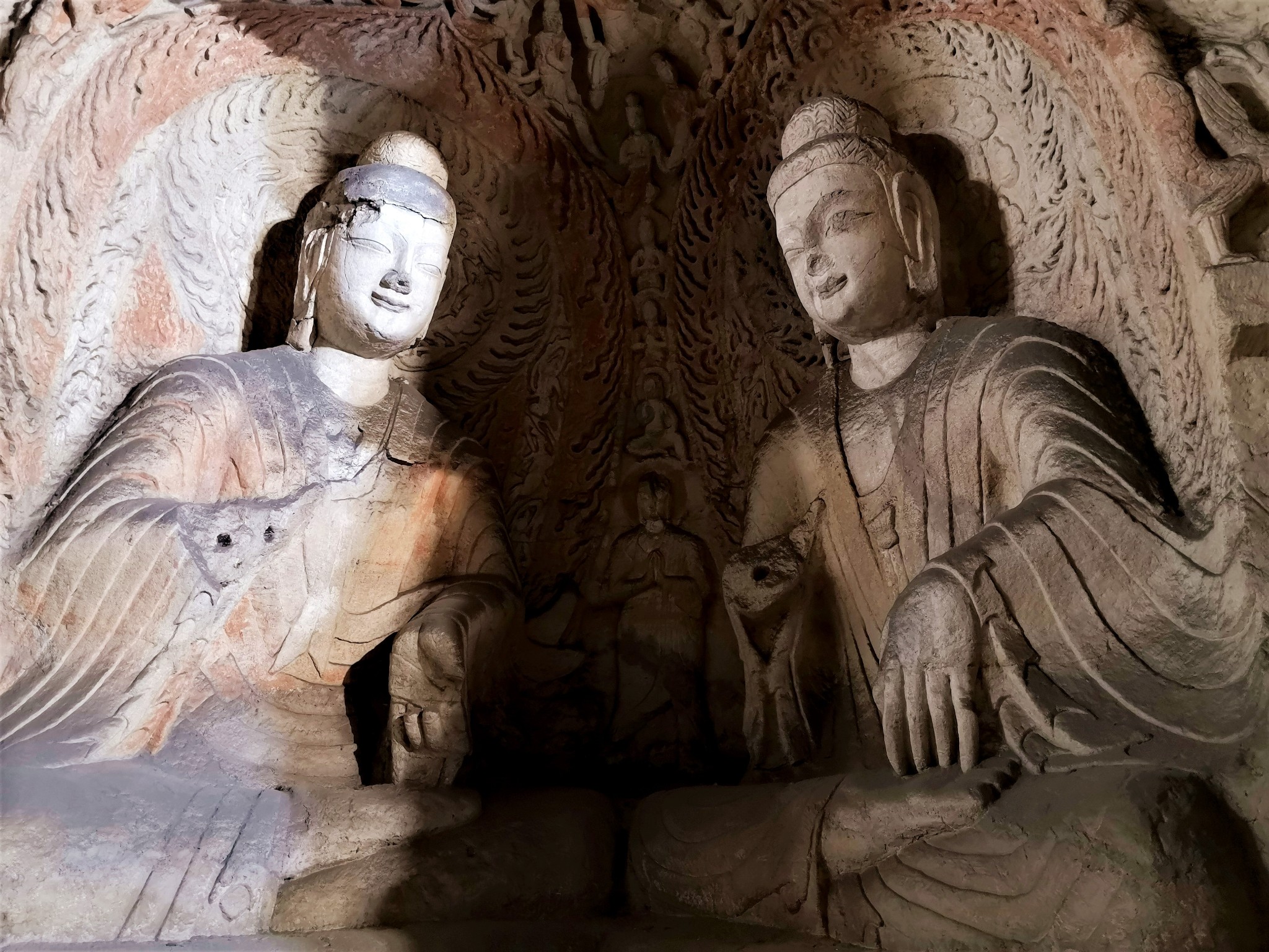 呈圆弧状的礼佛浮雕墙,长约20米高约4米,画面构图完美,表现了北魏皇家盛大的帝后礼佛图。