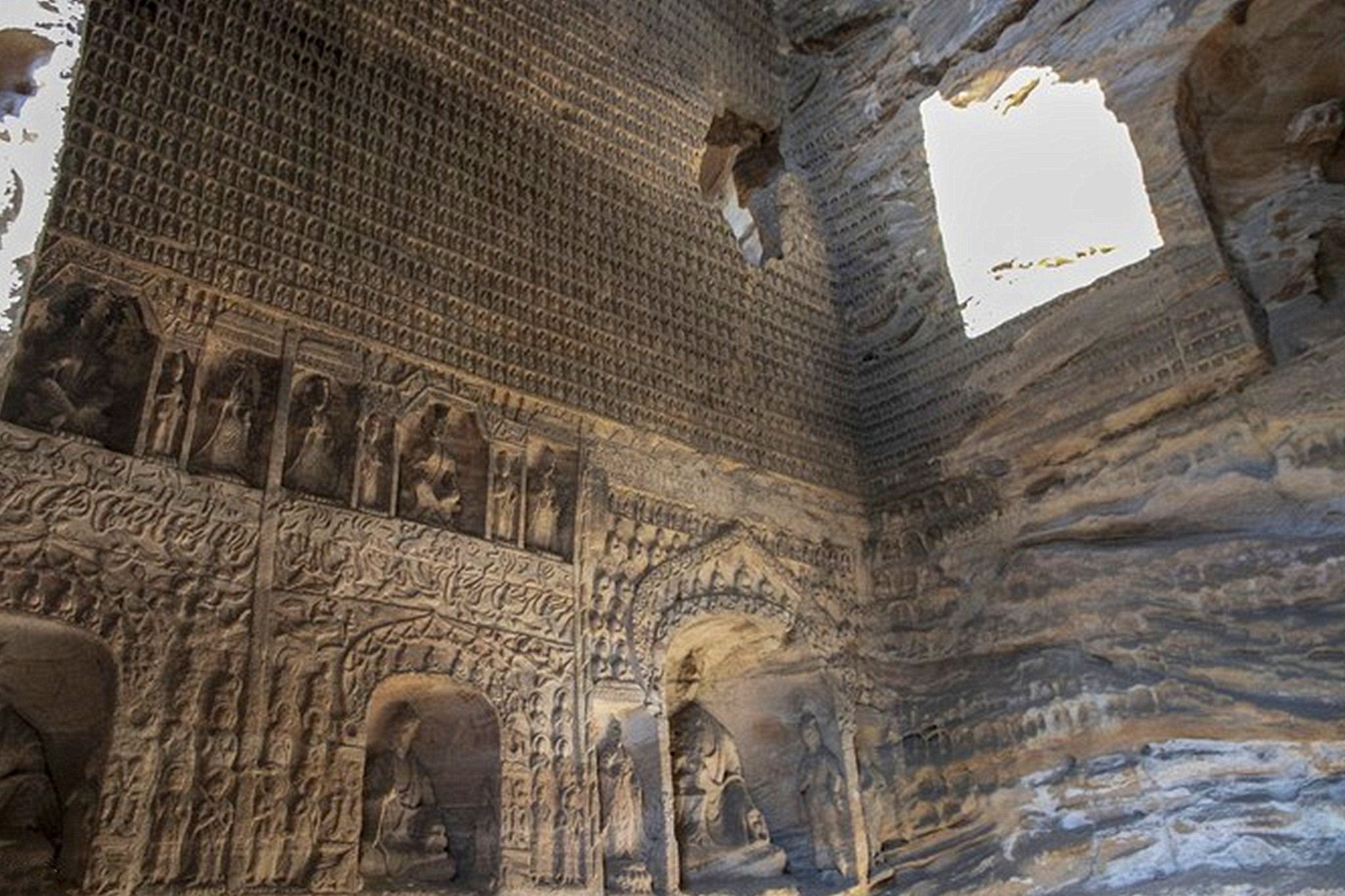 第15窟(万佛洞),旧称“千佛洞”。因为露天,所以风化较为严重。