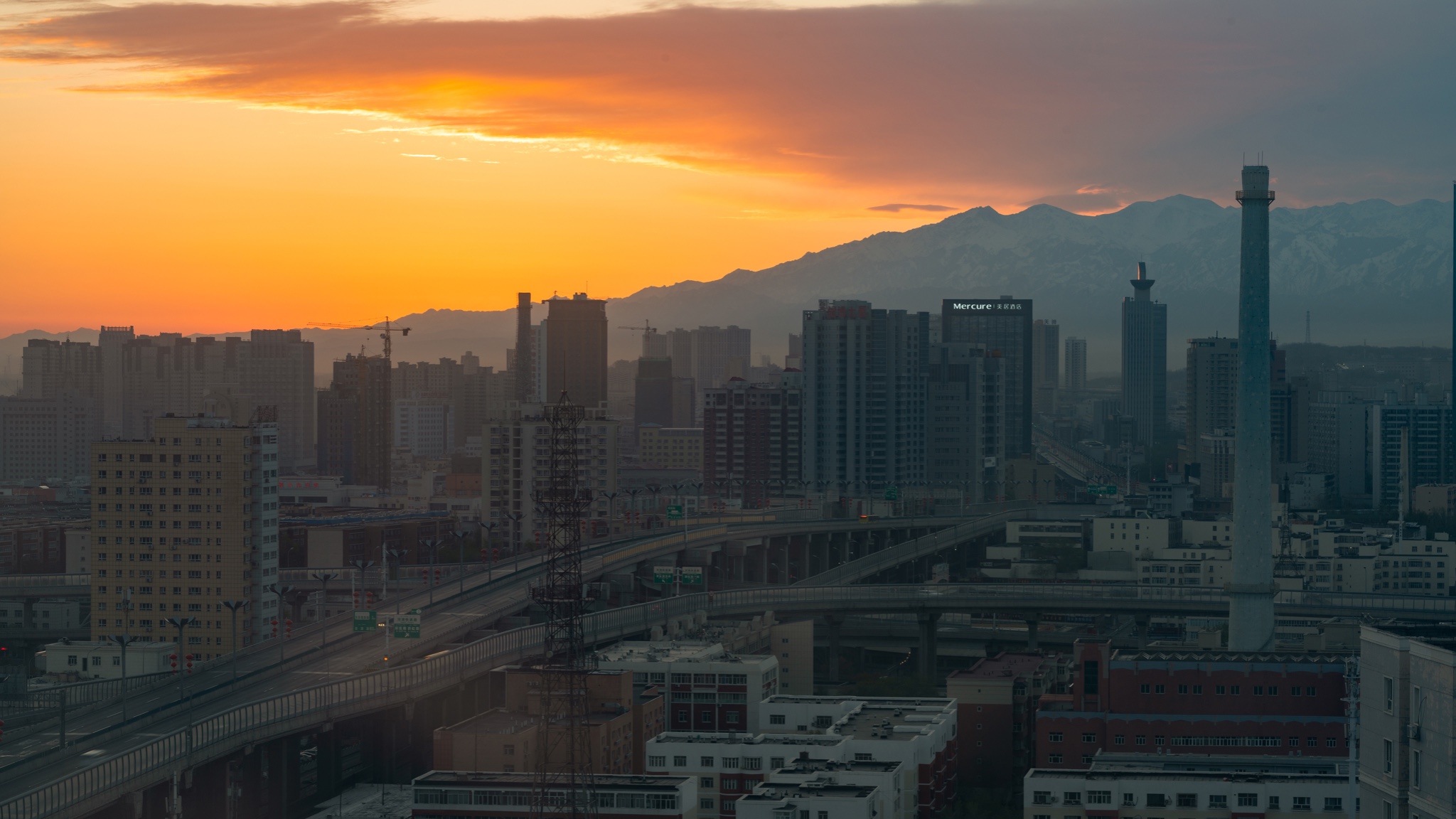 到乌鲁木齐的这天,蓝天白云,空气清新,站在酒店窗前能清楚看到远处的博格达峰。接我们的朋友说,这样的天儿在乌鲁木齐很常见,于是乎,原本想拍日落的计划就改到了第二天。然而,好天气可遇不可求,原来我们理解的好天气是不一样的。虽然是晴天,能看到远处的雪山,但是多了些许朦胧感,少了清透的状态。