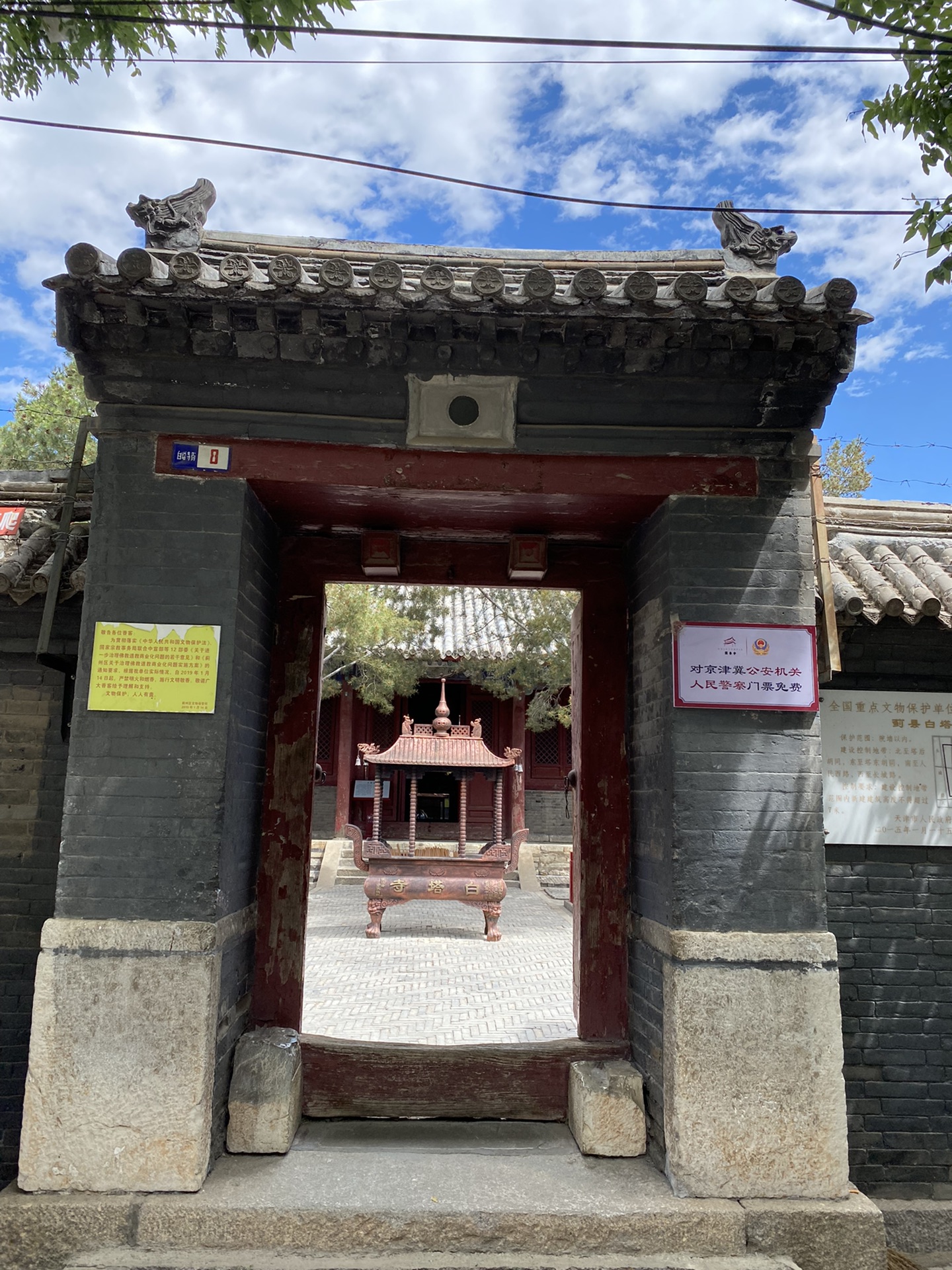 沿着小巷先南行后左转,约10分钟路程就到了白塔寺,白塔寺由前院的一处小型四合院式的佛堂和后面的白塔组成,前面的佛堂是明代嘉靖年间建造的,寺院没有山门,只有个两出水顶的小门。