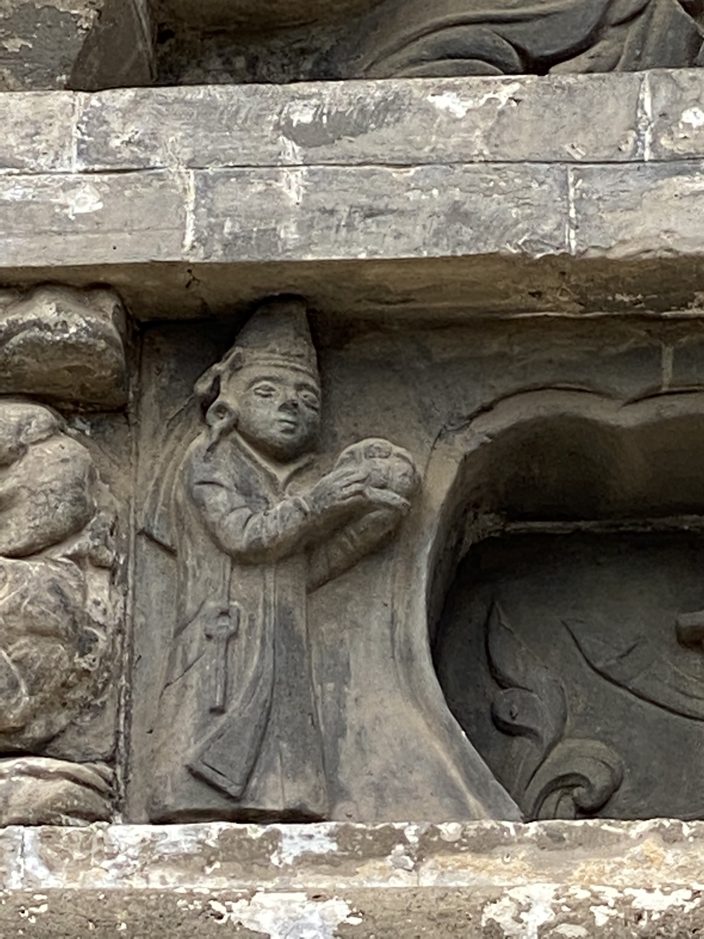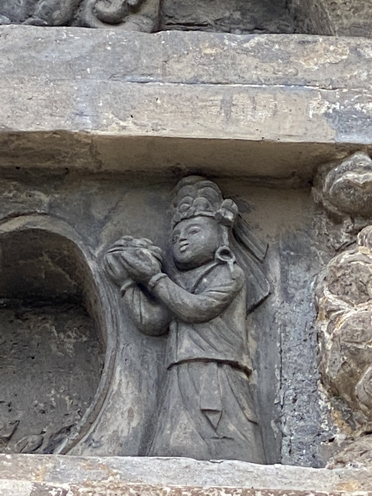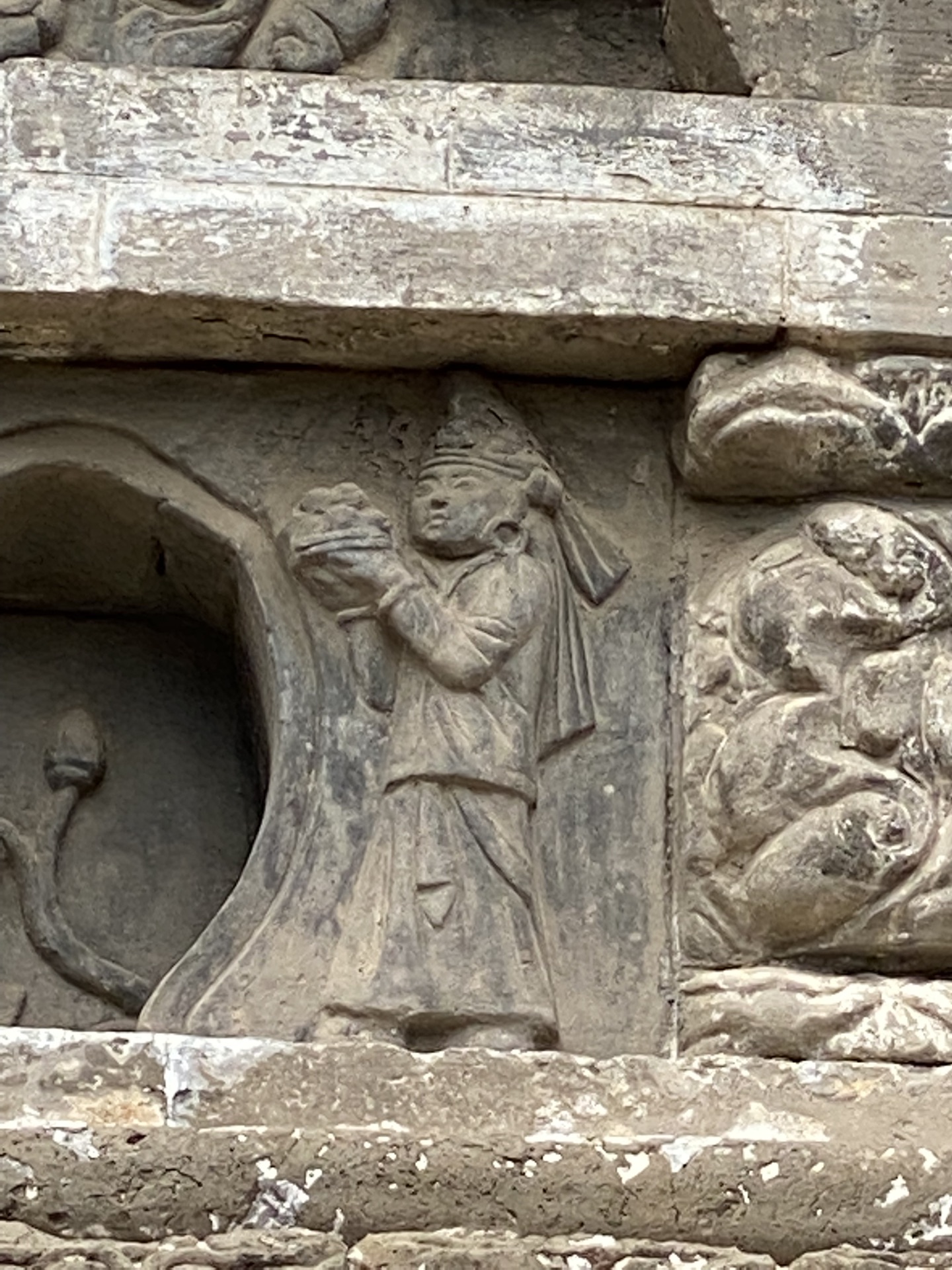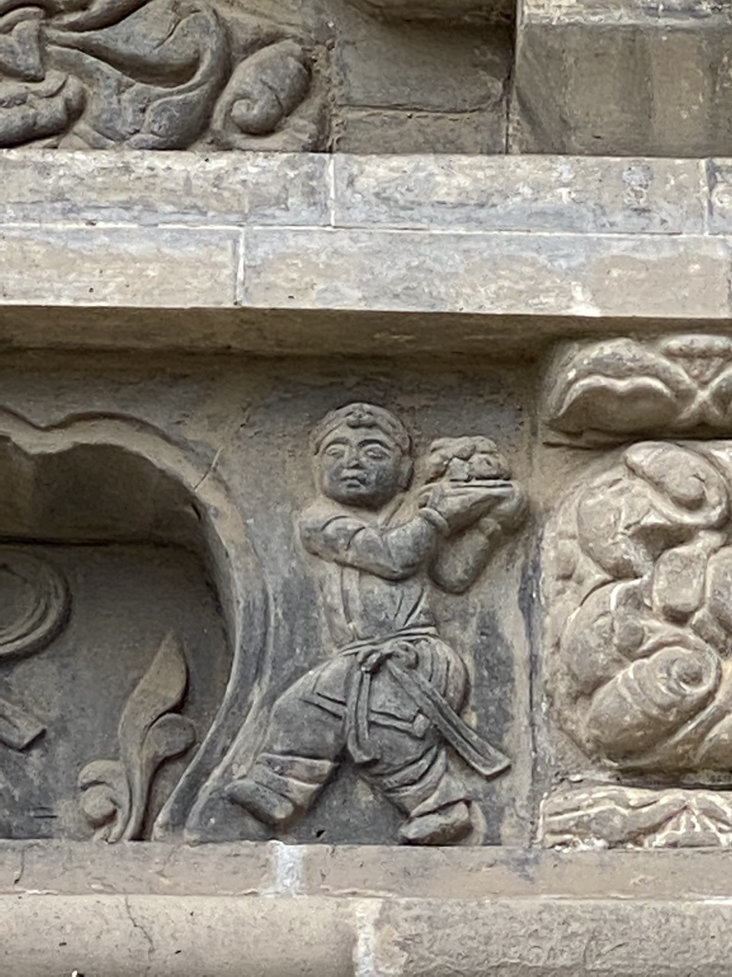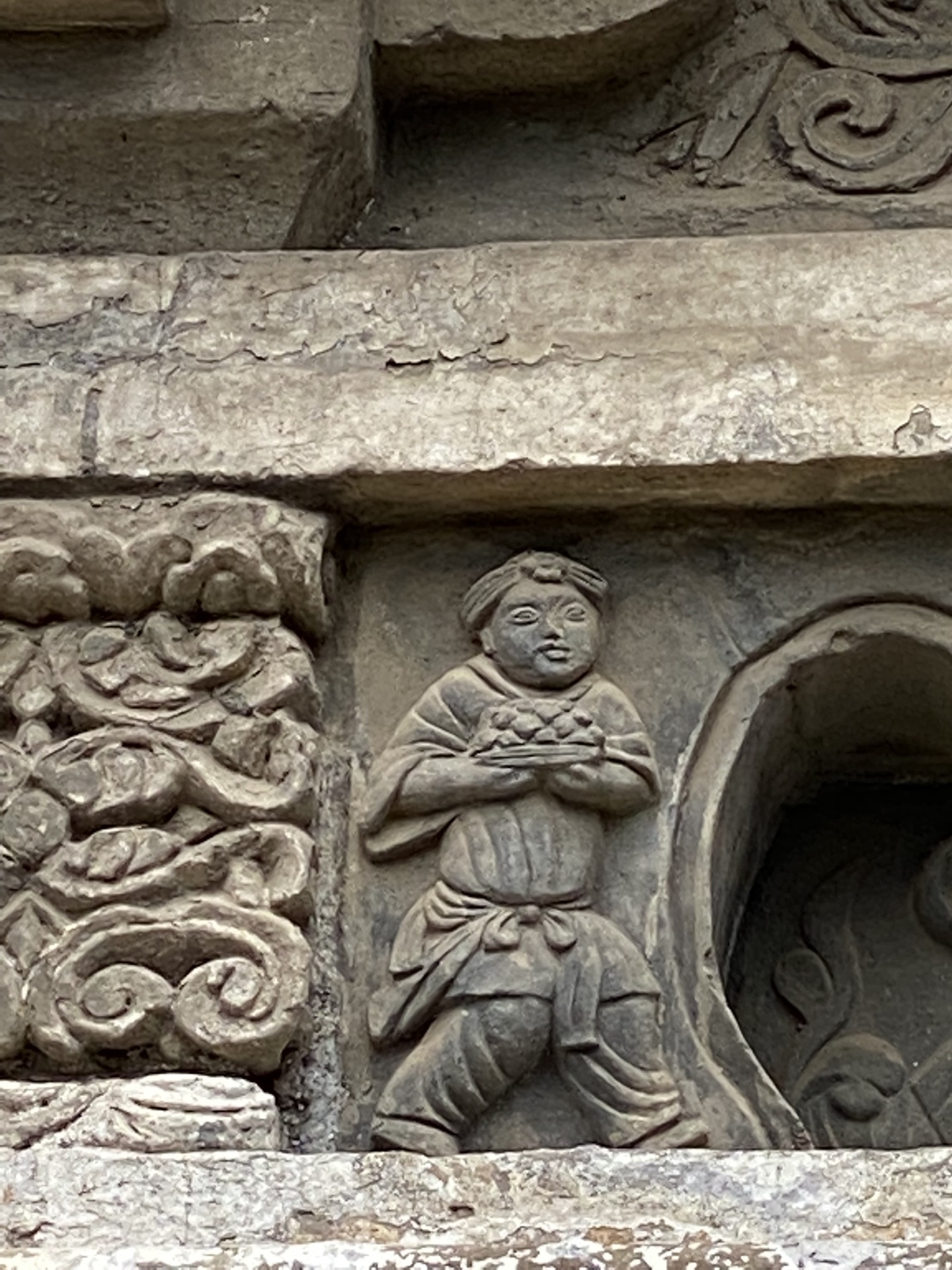 下面是雕刻在壶门两侧的15张16个侍者的雕像照片,他们衣着各异,动作各异,表情各异,栩栩如生,生动的展现了辽代社会生活的一面。