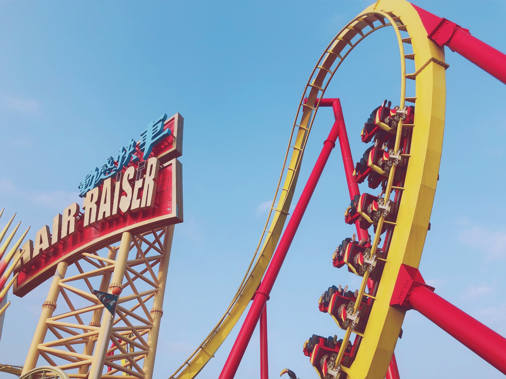 我在全球坐过的第一部垂直过山车就是在广州长隆欢乐世界,60米的高度光是站在下面往上看都足够让我心惊胆战...垂直跌落在很多人心中都是一道难以逾越的鸿沟,包括我也是一样哈哈哈!