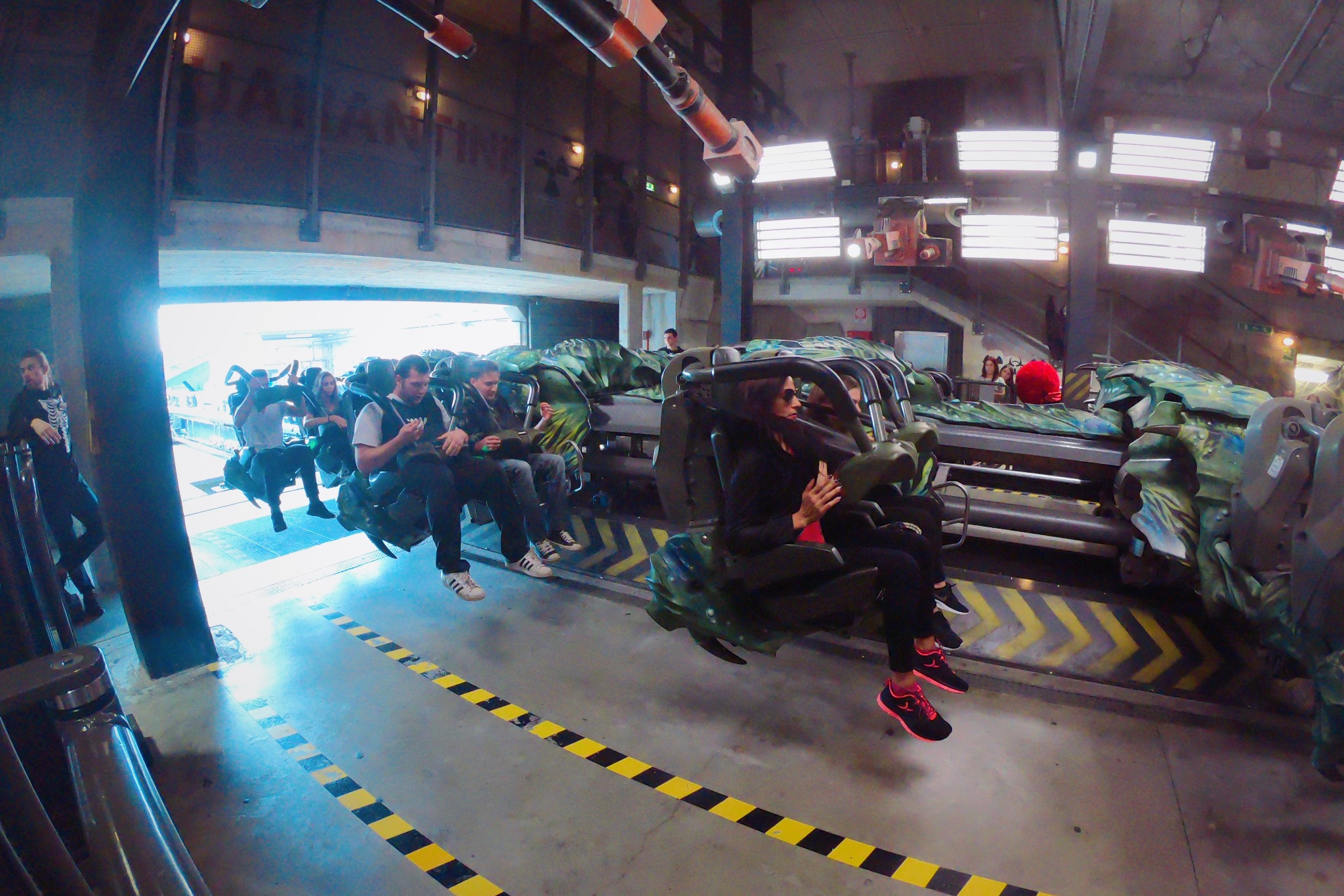 尤其是在提升到几十米高空的时候,感觉自己就像是被套进了一个小背心,被完全悬空在几十米的高处...视觉上带来的冲击感是其他过山车的数倍之多。