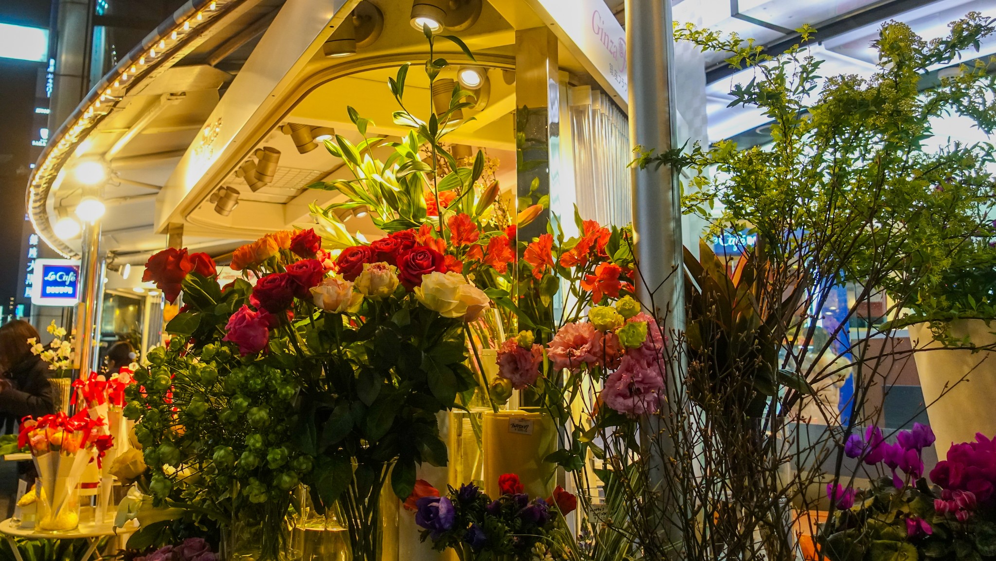 开在银座街角的鲜花店,有各种各样的玫瑰花。