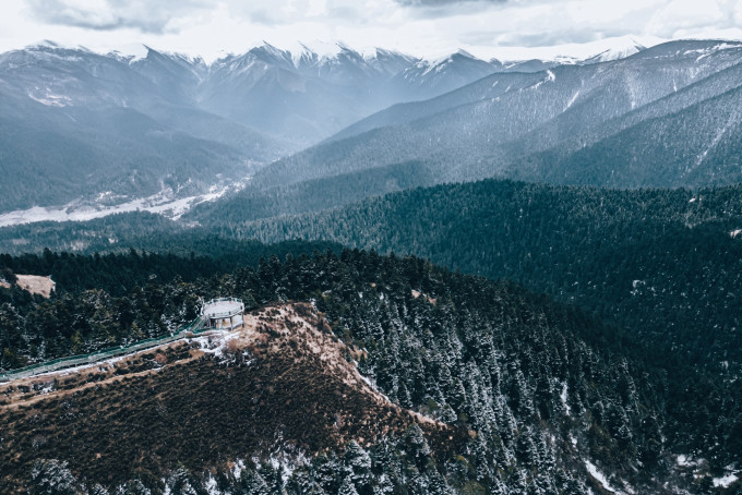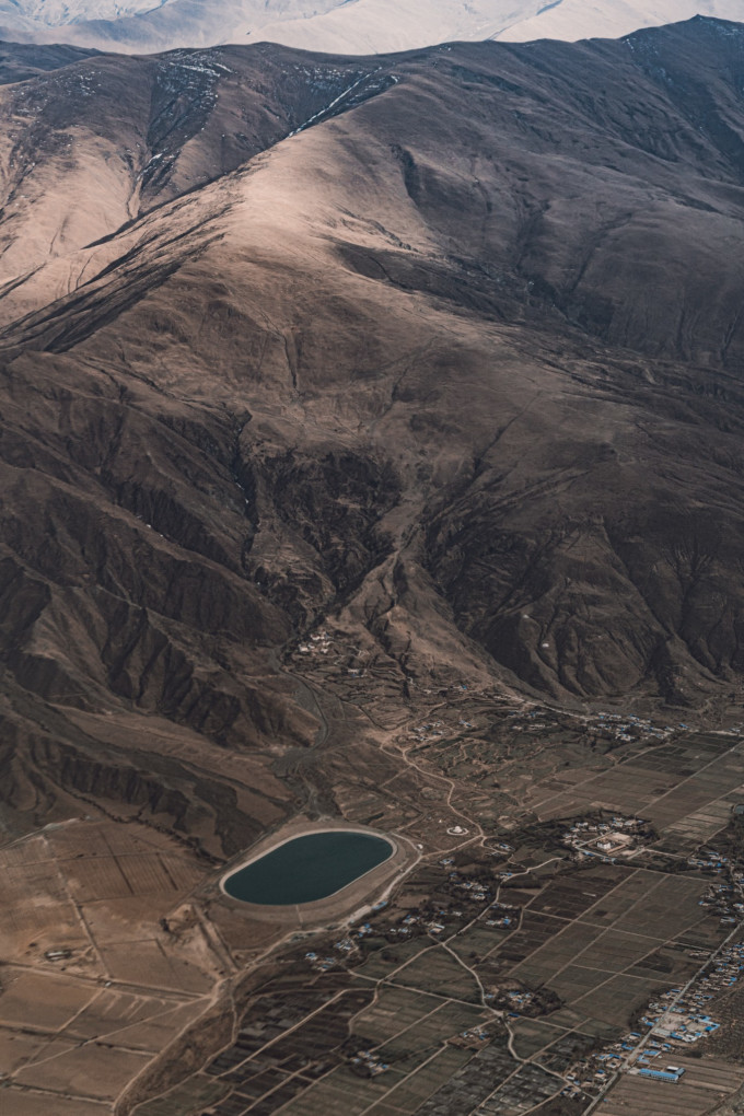 西藏的风景,从飞机上就开始了。积雪的山峦,重重叠叠,近处的山体沟壑清晰可见,远山渐渐模糊,消失在遥远的天边。