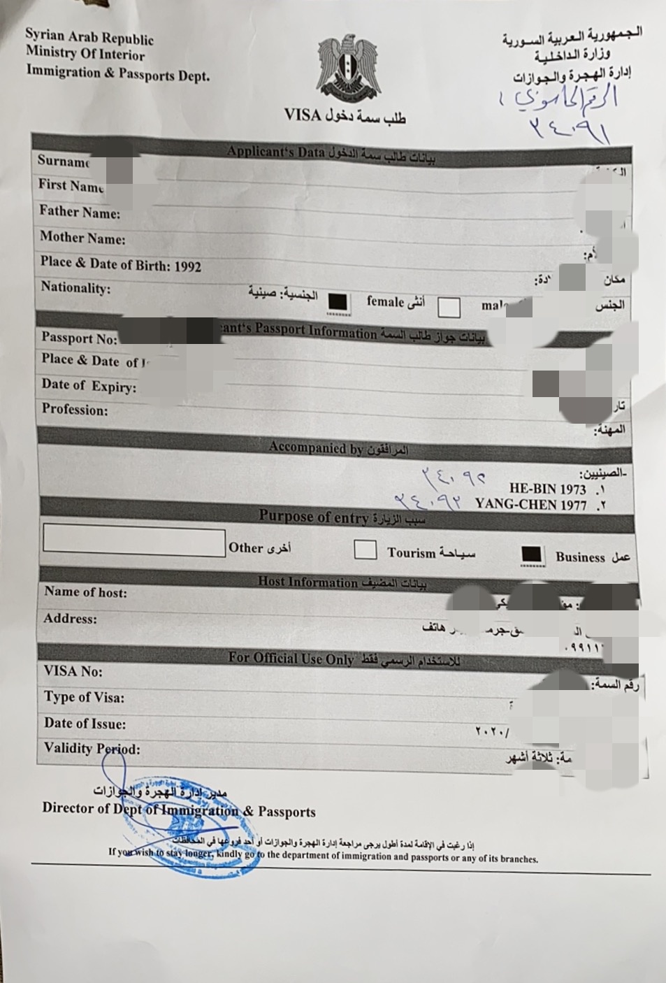 在小富婆 的努力下,联系到一纵横黎巴嫩和叙利亚的华人,帮我们弄到了叙利亚商务入境批文