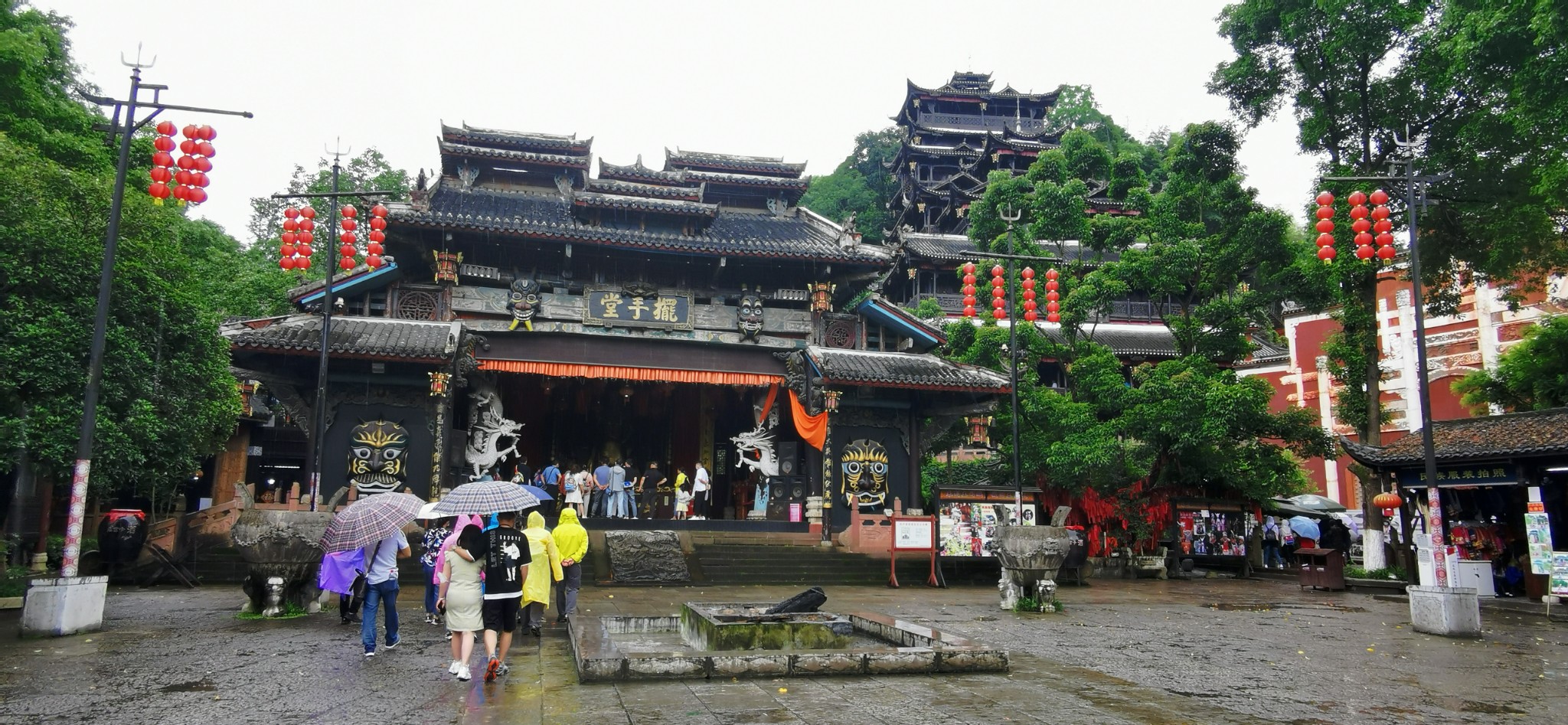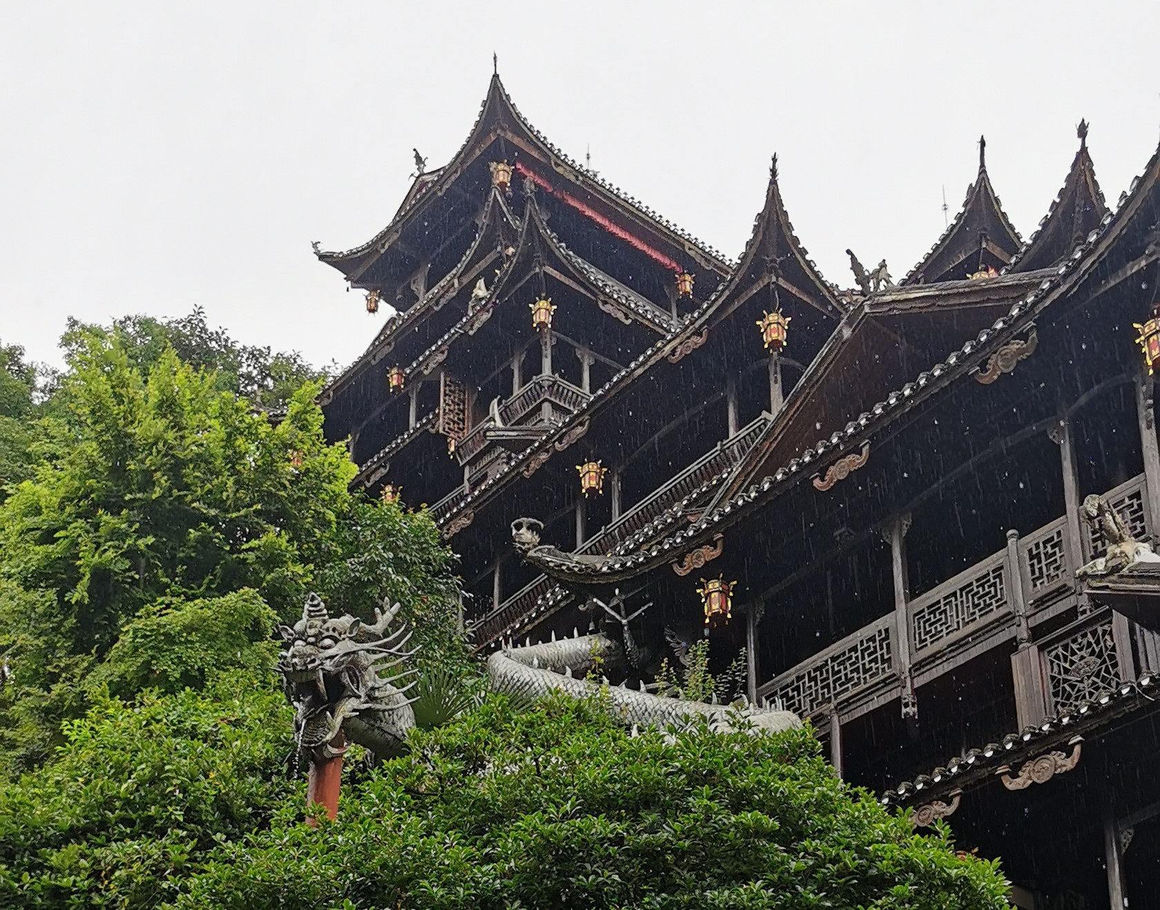 这是土司城正门,我们到达开始下起了小雨,导游正在排队购买门票。