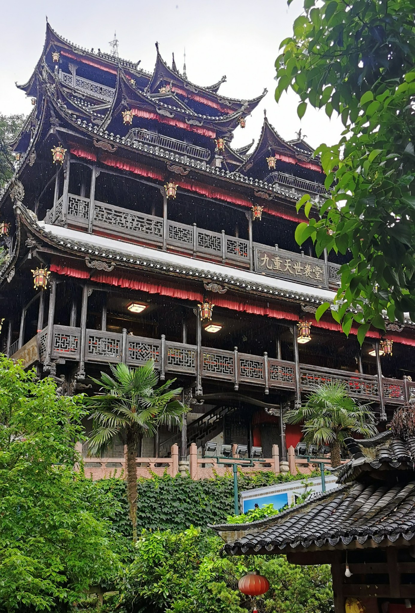 九重天介绍:“ 不上九重天,枉到风情园 ”。 九重天世袭堂是土家风情园的精华和灵魂所在。该建筑由土家民间艺人李宏进设计,依80度陡坡而建。