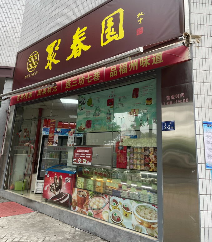 在地铁口看到了这家福州老字号——“聚春园”,福州的特产好像是啥年糕,我挑了一个比较有眼缘的红年糕(3.5/块)当早餐吃,他家糕不论是黏度还是甜度都刚刚好,我后悔没多买点其他的糕给厦门的两个美女尝尝,这个糕本身就是冷的。