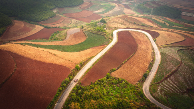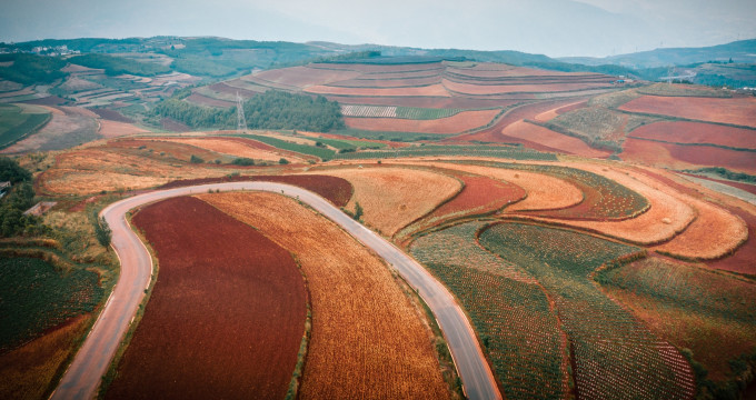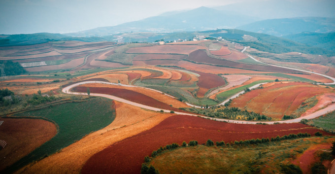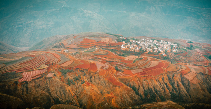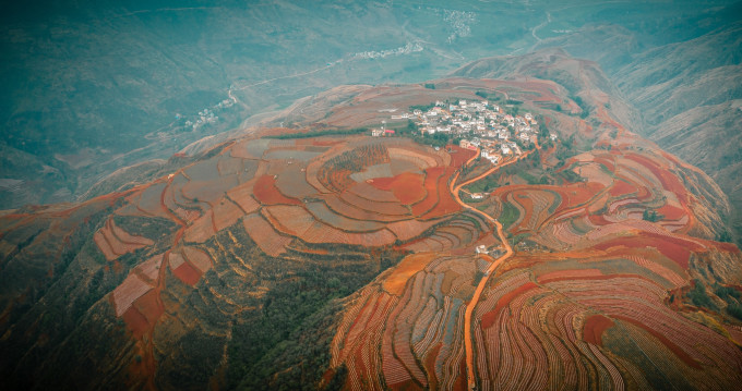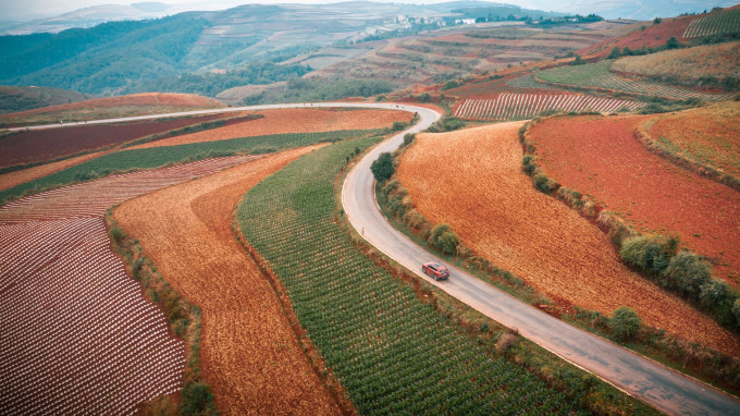 从昆明出发,跨过宜良的68道拐一路向北,就来到了东川新田乡,红土地里藏着上帝的调色盘,驾着车闯进这色彩之间享受质朴的山地艺术;