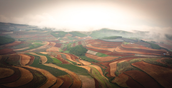 在云南高海拔、高气温、多雨季形成的温暖湿润环境里,在长年累月的风雨侵润、阳光照射下,东川的土壤改头换面,有了不同于它地的灼热而明亮的色彩。