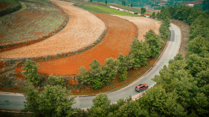 出昆明约1小时车程,来到的便是著名的宜良68道拐,具体位置叫做靖安哨,这里原本是明清两代设置的哨所,哨所镇守着古驿道。