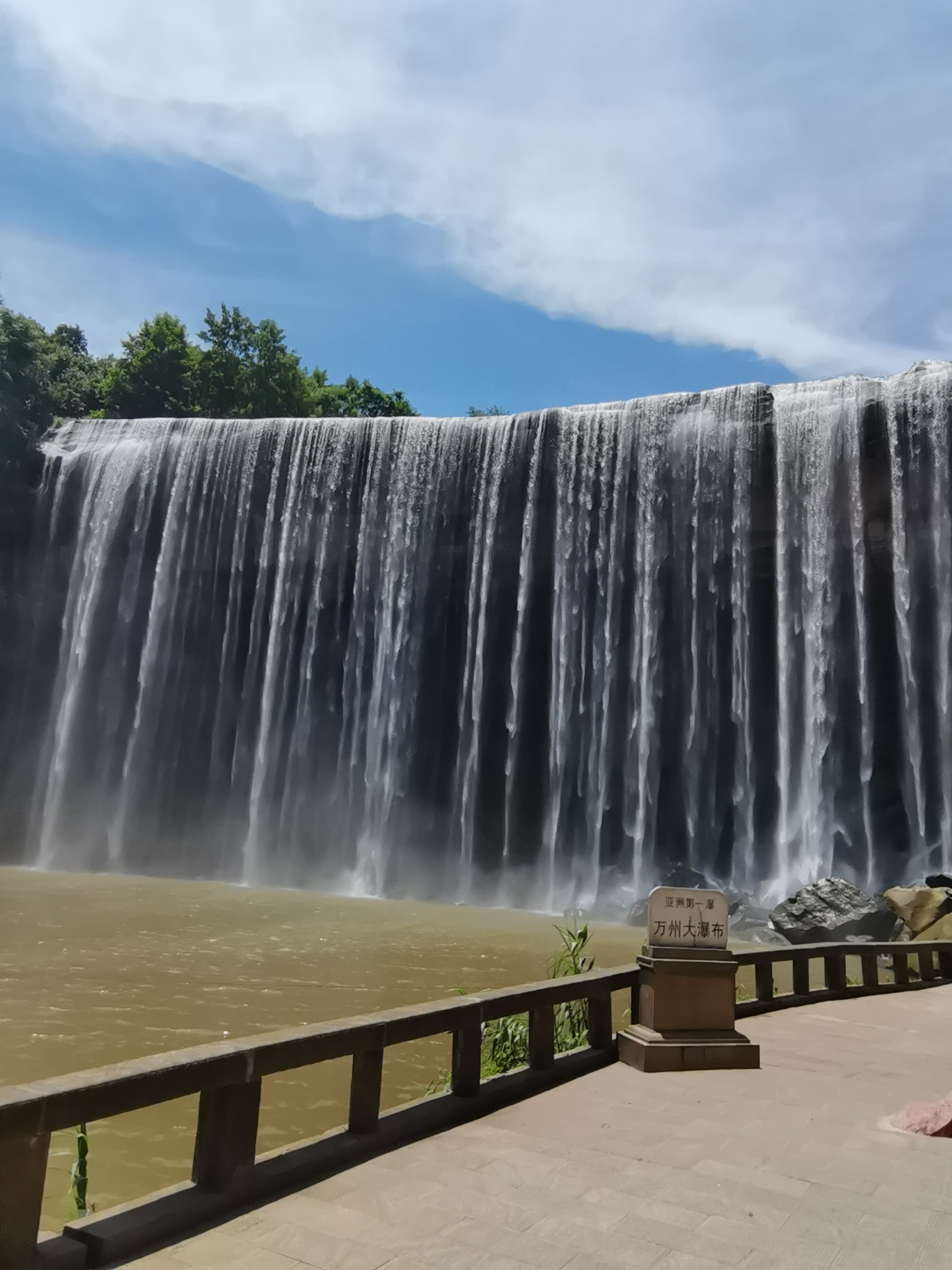 重庆万州大瀑布是国家4A级旅游景区。瀑布宽151米,比黄果树瀑布尚宽19米;高64.5米,面积9739.5平方米,是亚洲第一大瀑布,也是亚洲第一宽“瀑布”。万州大瀑布群景区山青、水秀、瀑宽、洞奇、潭幽、湖大、虹美。瀑布下面1600平方米的水帘洞能极大丰富您的想象力。万州大瀑布距离恩施约200公里,约需3个半小时的车程。我们早上从女儿城出发中午到达大瀑布景区。景区内自然景色非常好,但是景区的配套设施稍显落后,还有待于开发,首先景区的大门就很不起眼,不够气派。