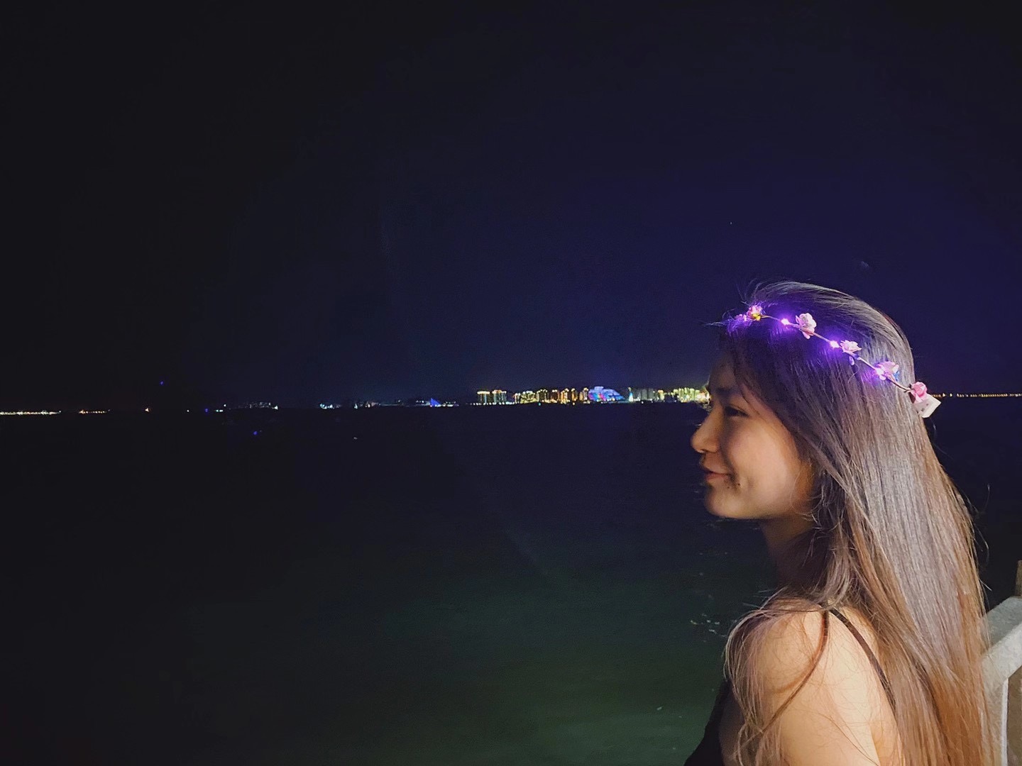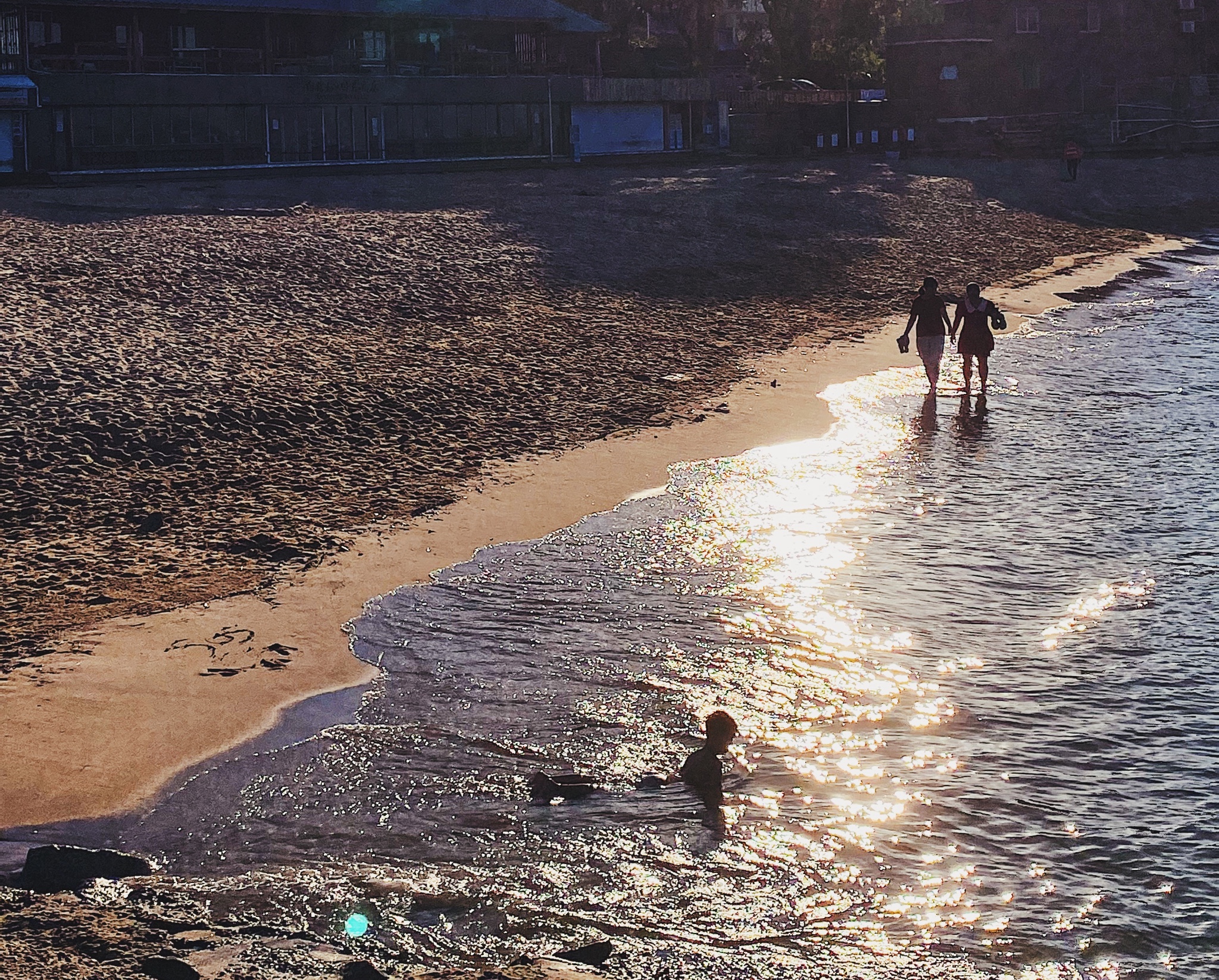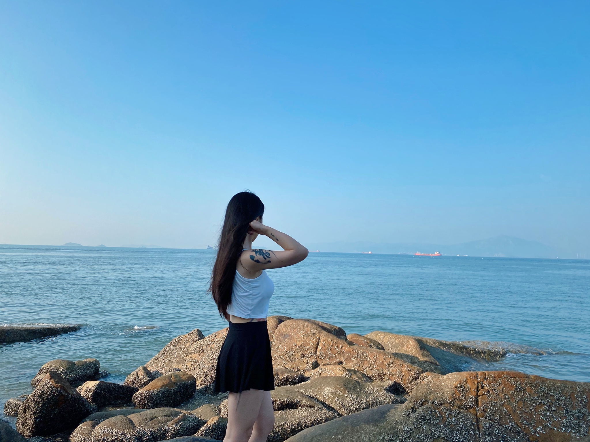 太阳慢慢升起后,粉色退去,随之而来的清透的蓝色。我与妹妹在岸边又坐了会儿,吹吹海风,聊聊天。