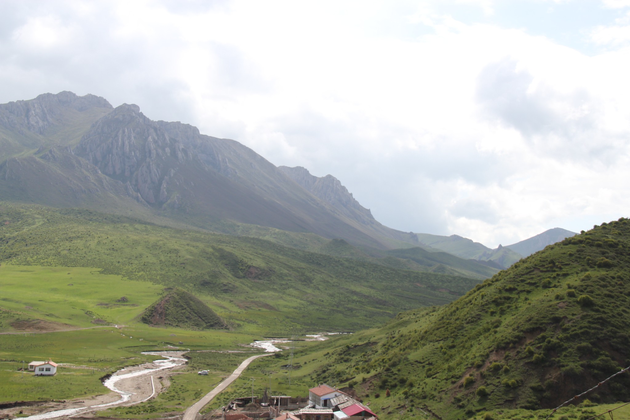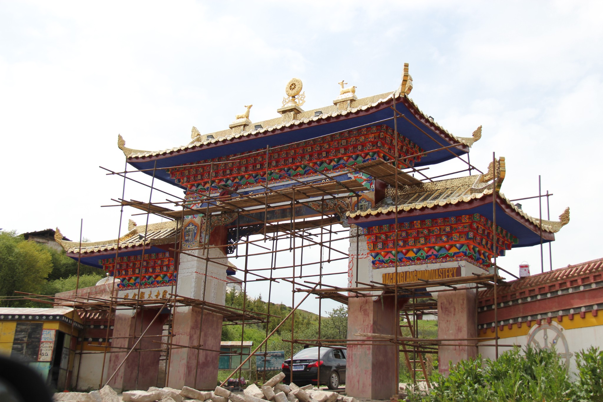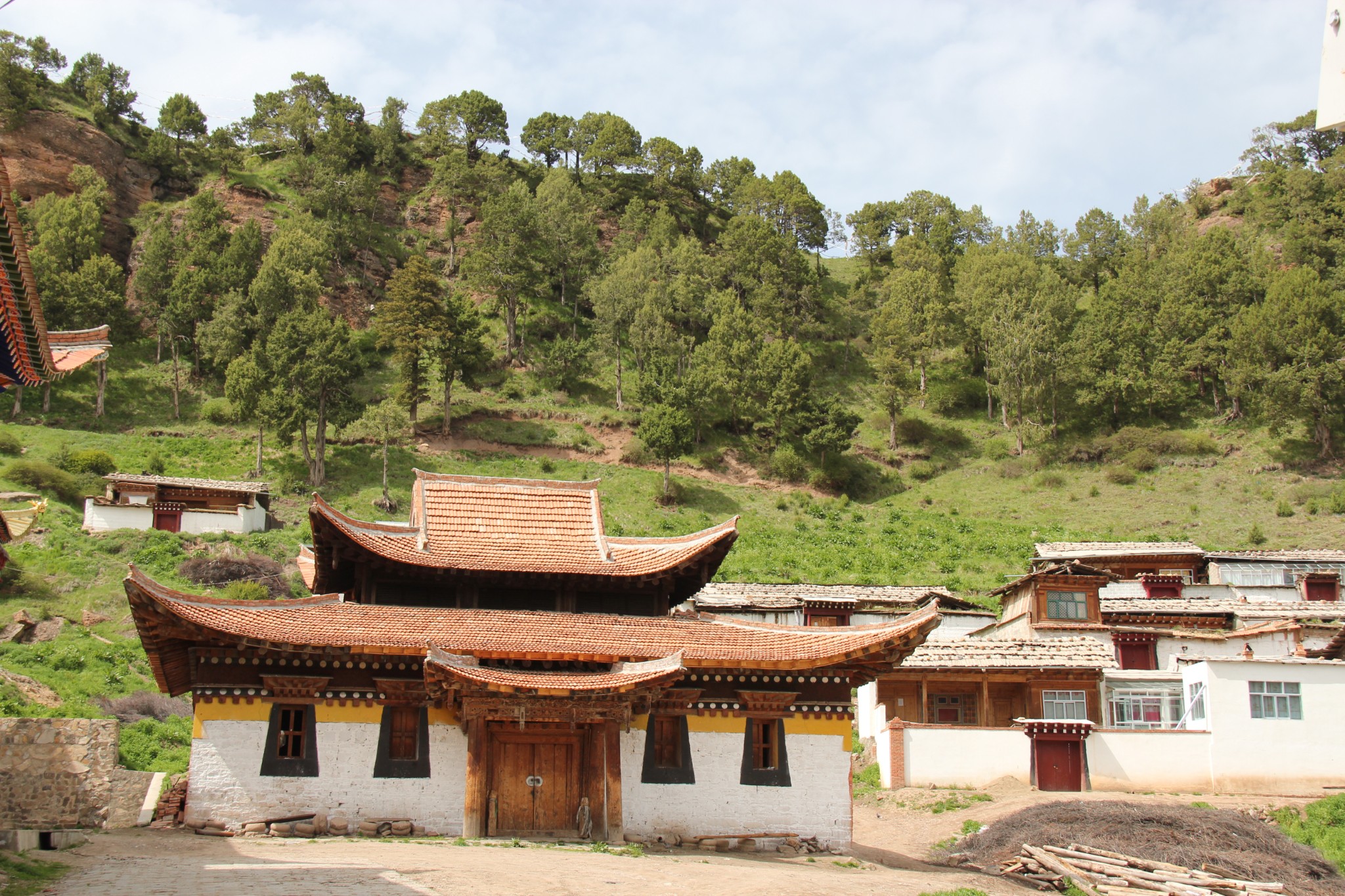 西北自驾游第33天(6月16日),游完尕海湖继续走213国道,一路仍是甘南草原风光,行驶40公里到郎木寺镇(属甘南藏族自治州碌曲县,海拔3350米),下午3:30入住甘肃达仓郎木宾馆,后院有停车场。