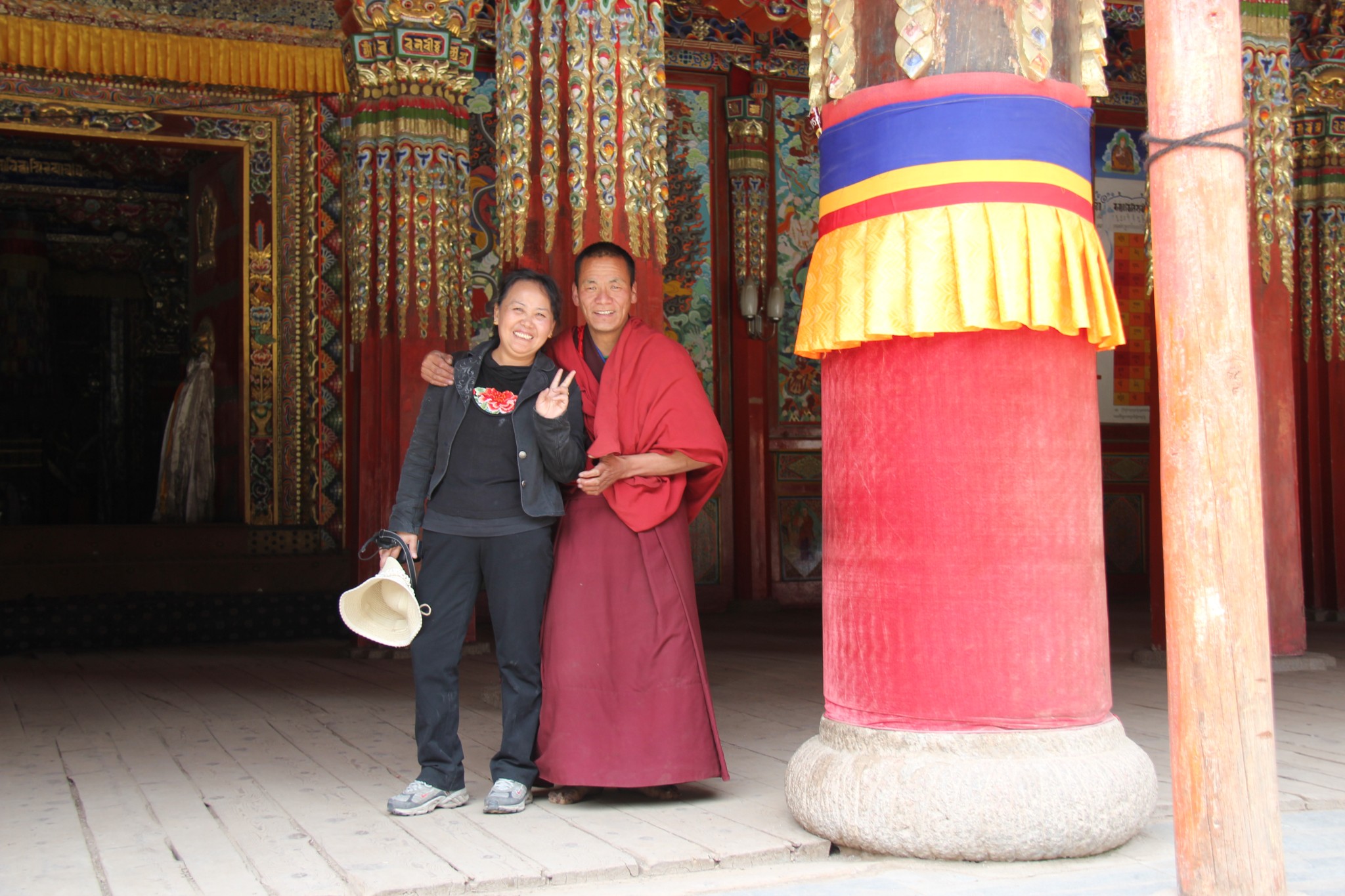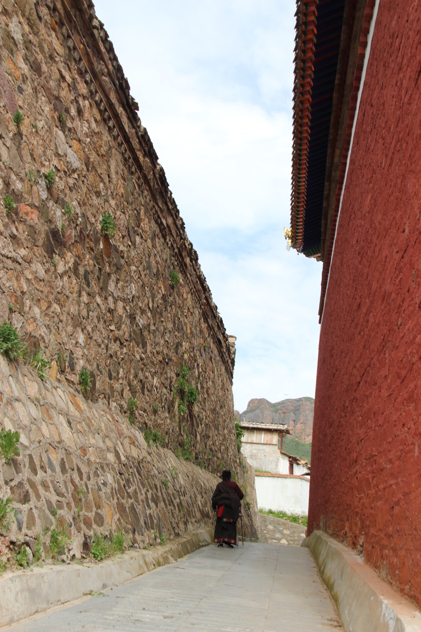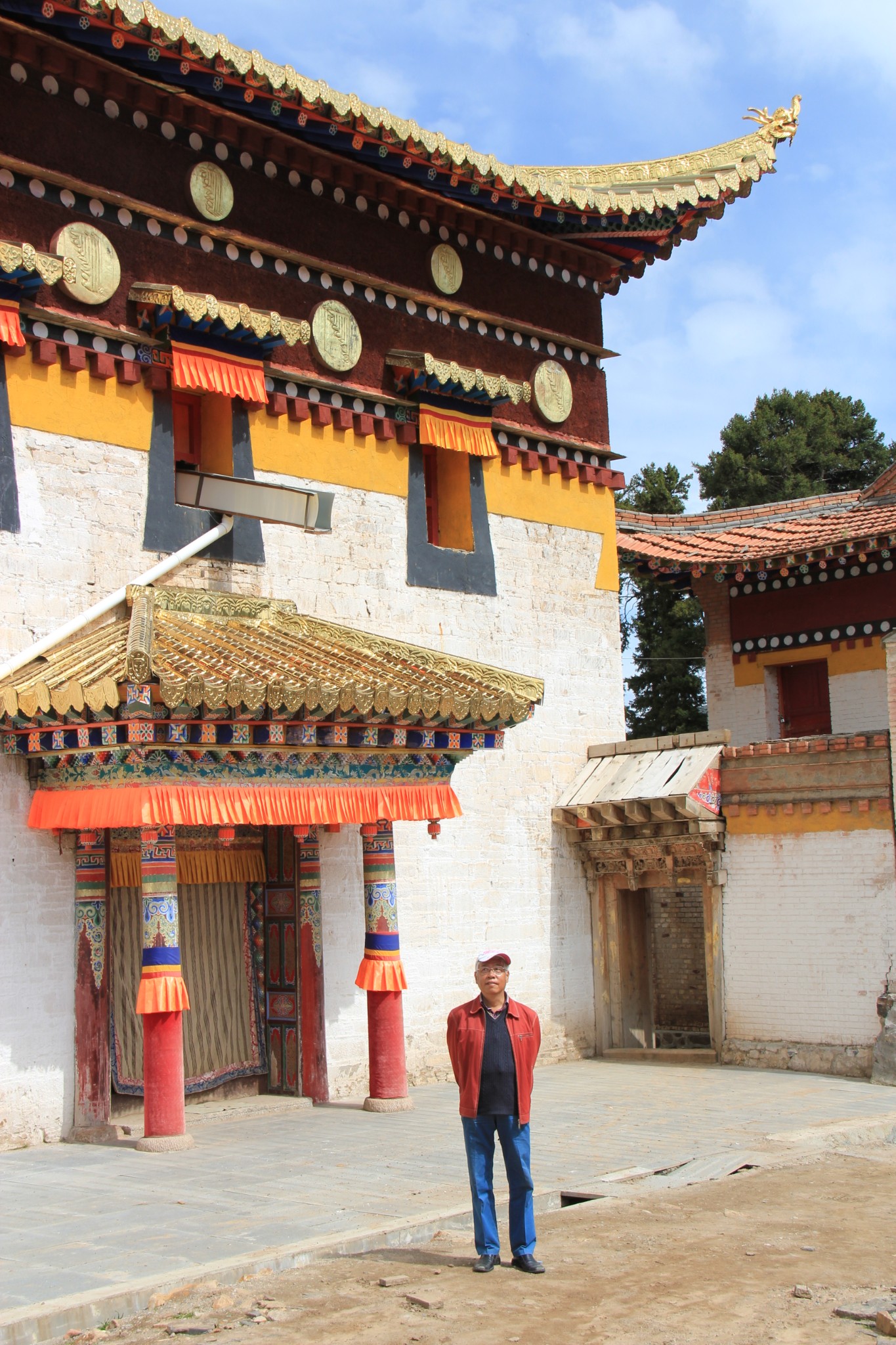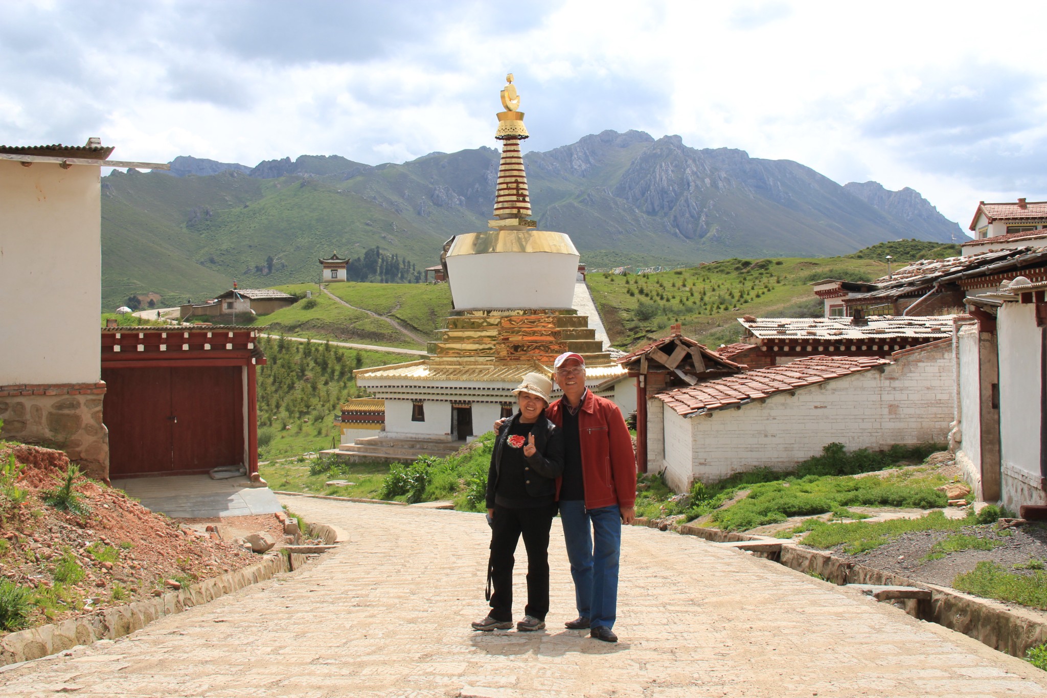 饭后在小镇散步,走了不到300米,看到马路上铺的路面有点不同,据刚才饭店老板说这里就是四川与甘肃的分界线。四川这边也有一个郎木寺,寺院已经关门,只能在外面看看。拍了几张照就原路返回宾馆休息。