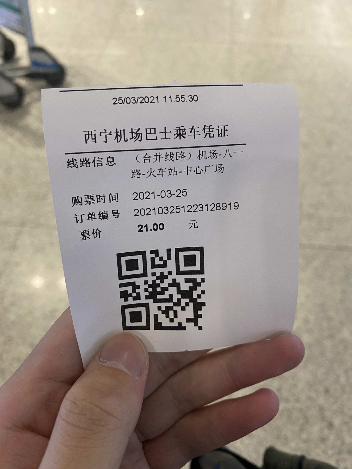飞机大概12点到了西宁机场,机场出口旁边有自动售票机,可以直接买去市区的大巴车票。
