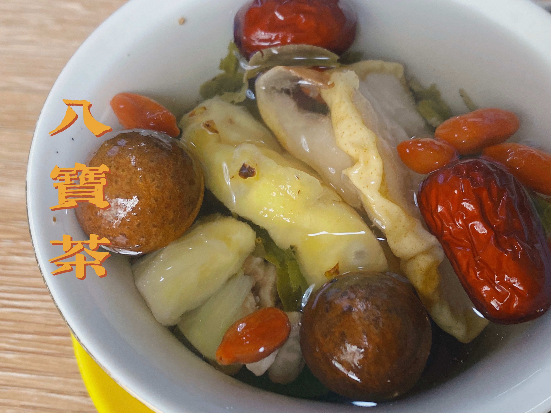 他家的八宝茶也很有意思,和四川的盖碗茶不一样,它里面放的是红枣、枸杞、雪梨、桂圆、菠萝、猕猴桃、核桃,没有另外加冰糖,甜度全是从果肉里面自然泡出来的,非常解腻。