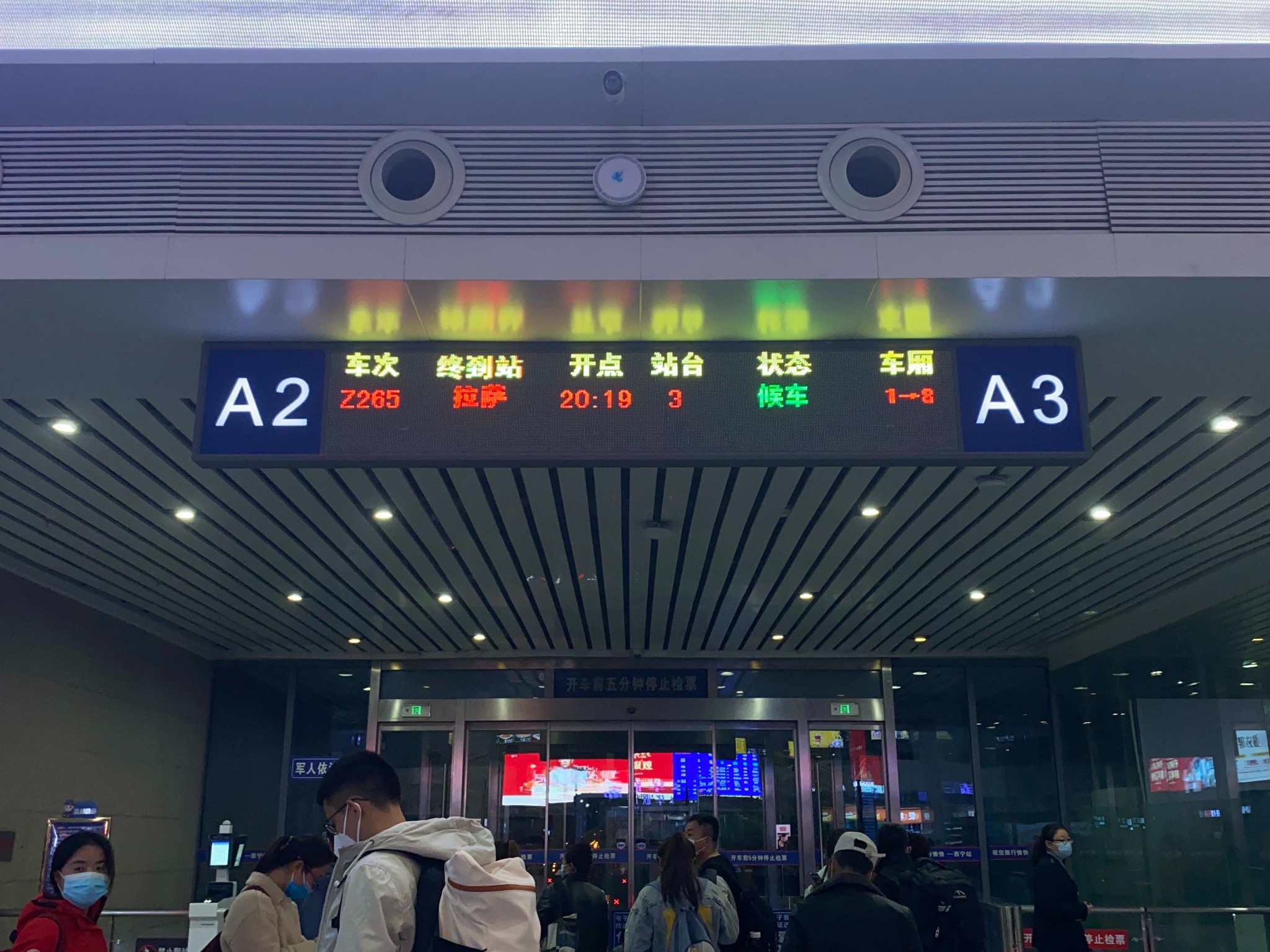 逛完清真寺,随便吃了点东西,时间差不多了就返回火车站候车,进站后看到检票口显示屏上“拉萨”两个字时,才终于有了一种即将去到西藏的真实感,候车的人们在闲聊,语气里面不免充满激动和未知,如果这时候有上帝视角,我激动的程度也不比他们弱吧。