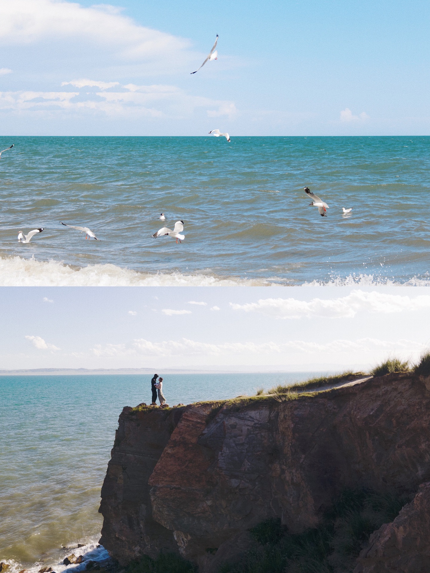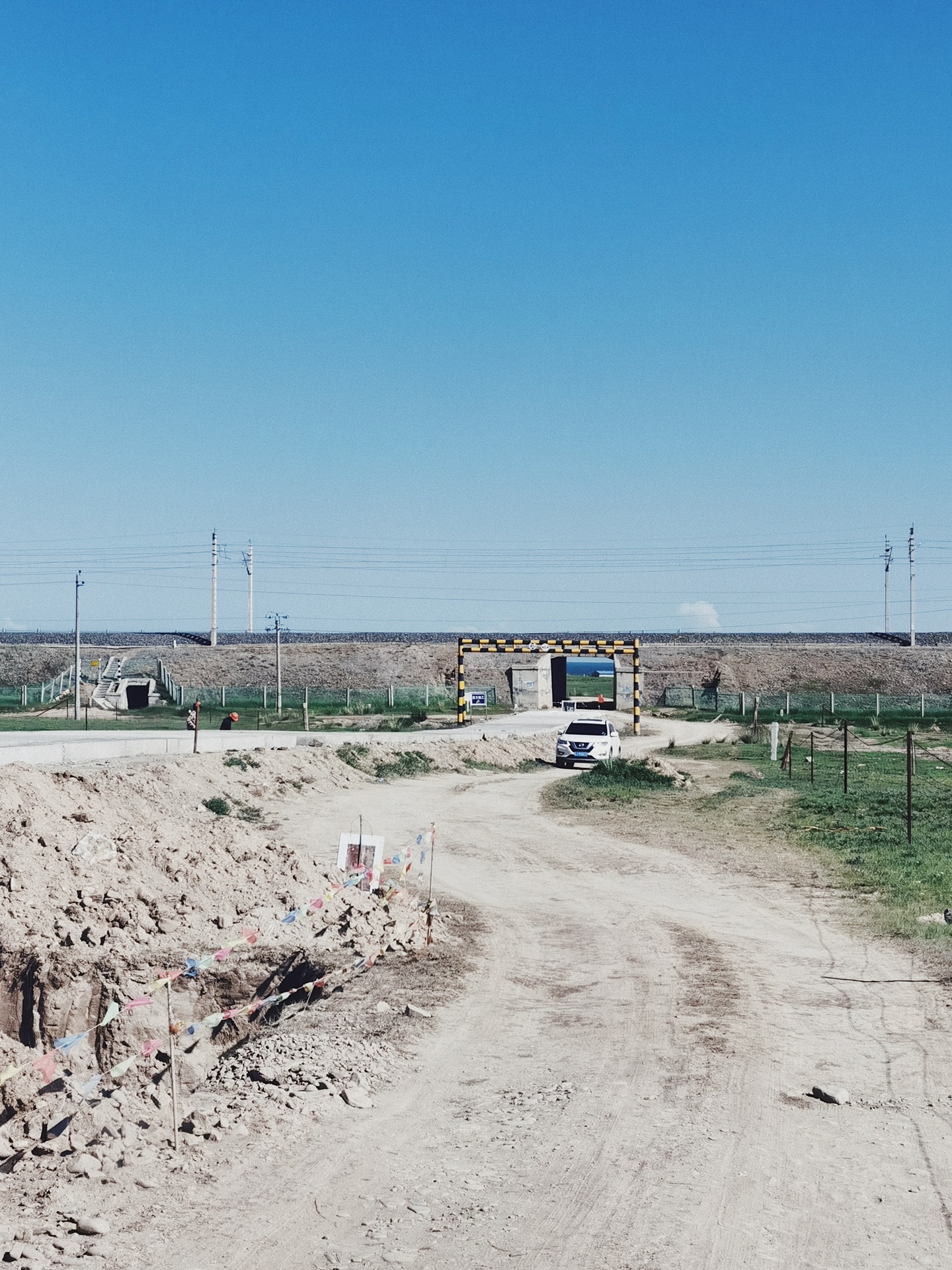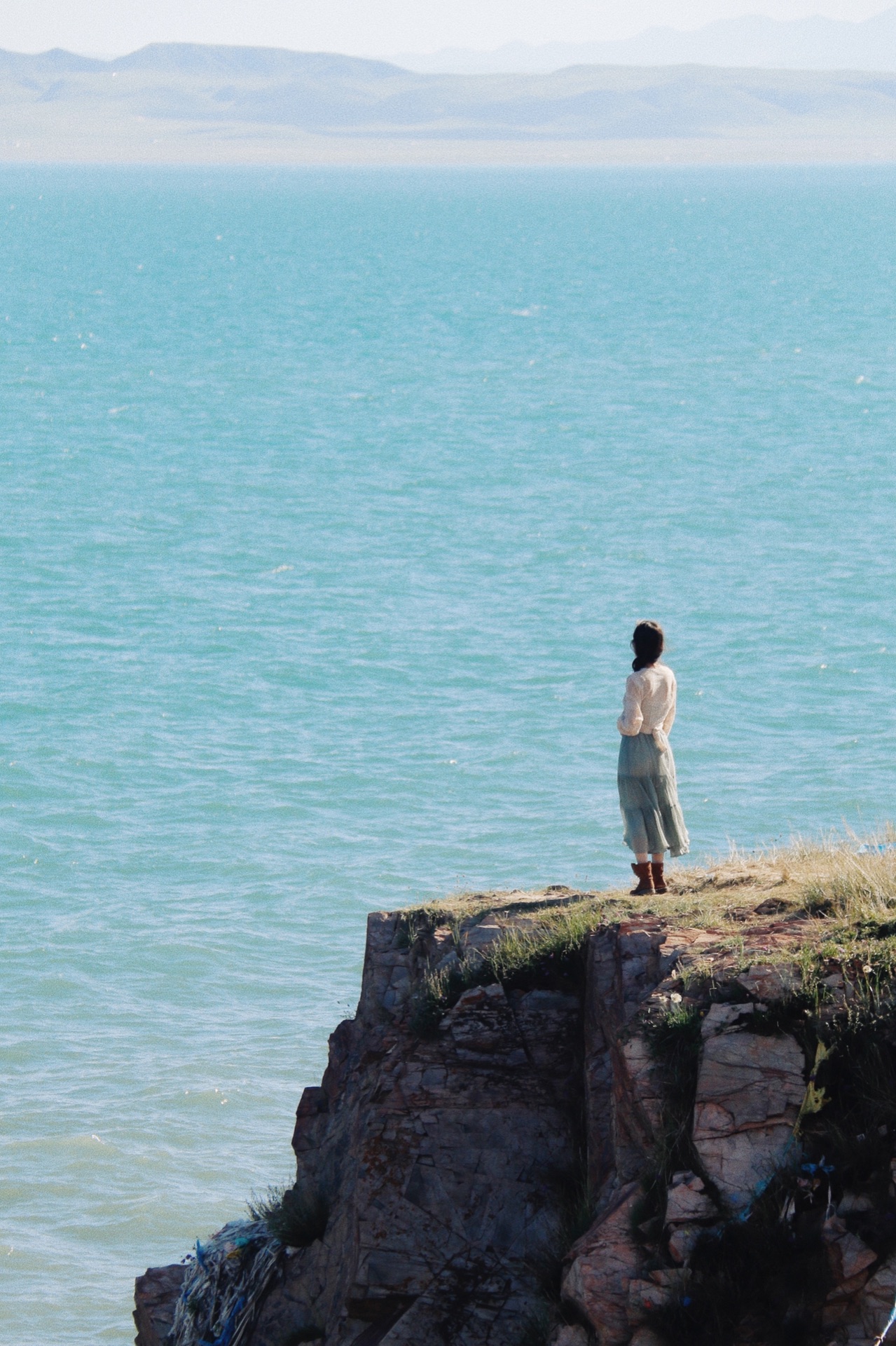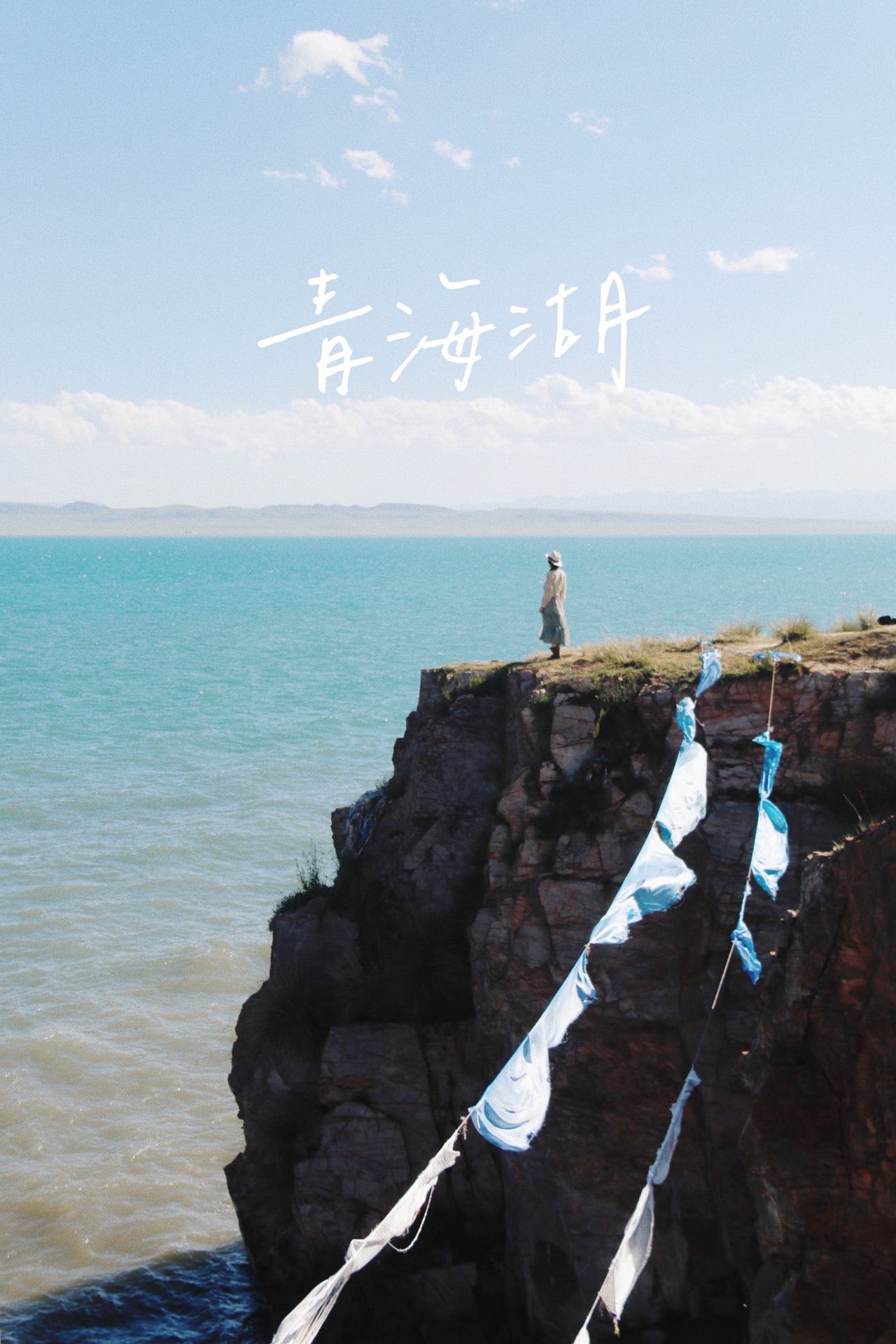 导航达秀木拉布宰,沿着一条小路开进去,穿过一个铁轨桥洞就能看到青海湖啦,爆火的断崖机位就在右边,往坡上经幡处走,有当地居民过来私人收费10元。这里确实人不多,能单独承包整个山头的那种。青海湖的风有点上头,我的腿有点抖~