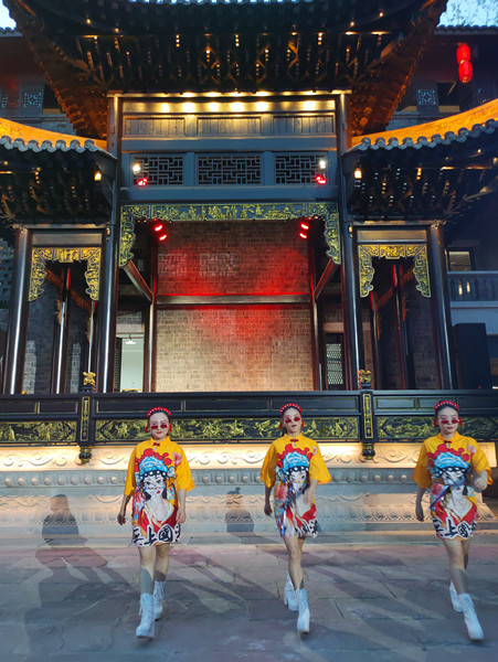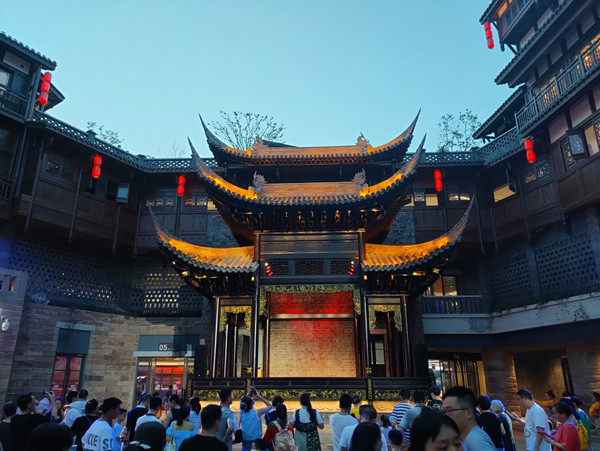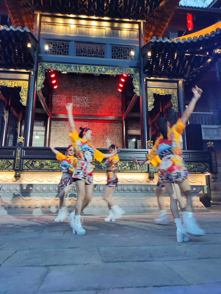 6、磁器口码头的灯光秀正好在阶梯处,位置狭窄,非常容易出安全事故;水幕表演效果不好,建议换成其他表演形式