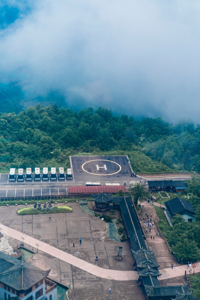 山下还是阳光普照,到了古佛坪以后四周逐渐被大雾笼罩,但那个巨大“H”依旧清晰可见。这个直升机停机坪据说会今后会串联洪雅各大景区,打造空中旅游,这分明是“豪”字字母的开头。