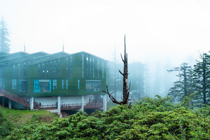 缆车送我们到达山顶,雾气丝毫没有消散的意思,我们只得硬着头皮继续前行,希望前方有奇迹在等着我们。