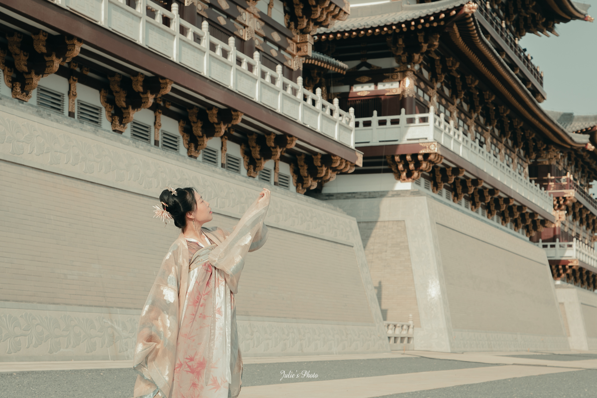 明堂天堂以西,是唐朝皇宫贵族的后花园九洲池。这里十分适合拍汉服。