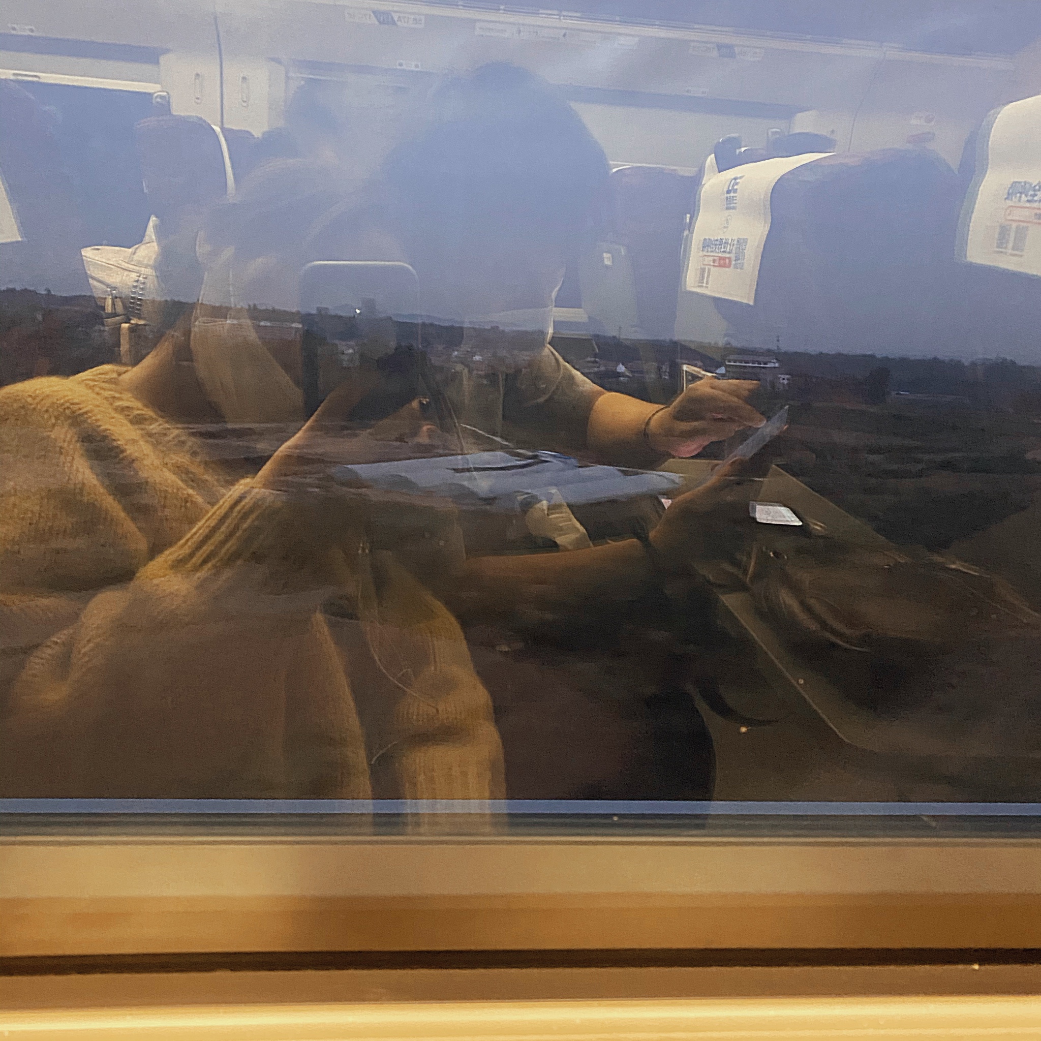 十五有年国庆跟团来过青岛,所以他对青岛没太感冒,纯是带我来玩。但他是第一次做高铁你敢信?嗯,他的交通工具略贫瘠。检票完就贼兴奋的研究高铁座位桌子看着窗外,一切都是新奇的。新奇之后就是玩手机?