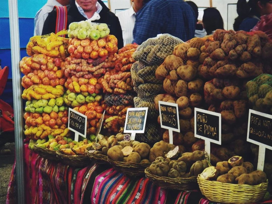 秘鲁的农贸市场,就像是大型的马铃薯博物馆,你能在那里见到琳琅满目的马铃薯,形状各异、色彩斑斓。
