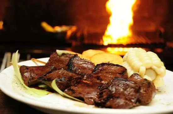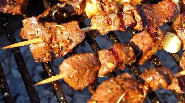 口感丰富的烤牛心串,在前一天经历了植物油、蒜末、茴香、柠檬汁、辣椒酱、胡椒粉、盐等等材料的混合腌制,第二天在炭火上烤熟后搭配马铃薯食用。
