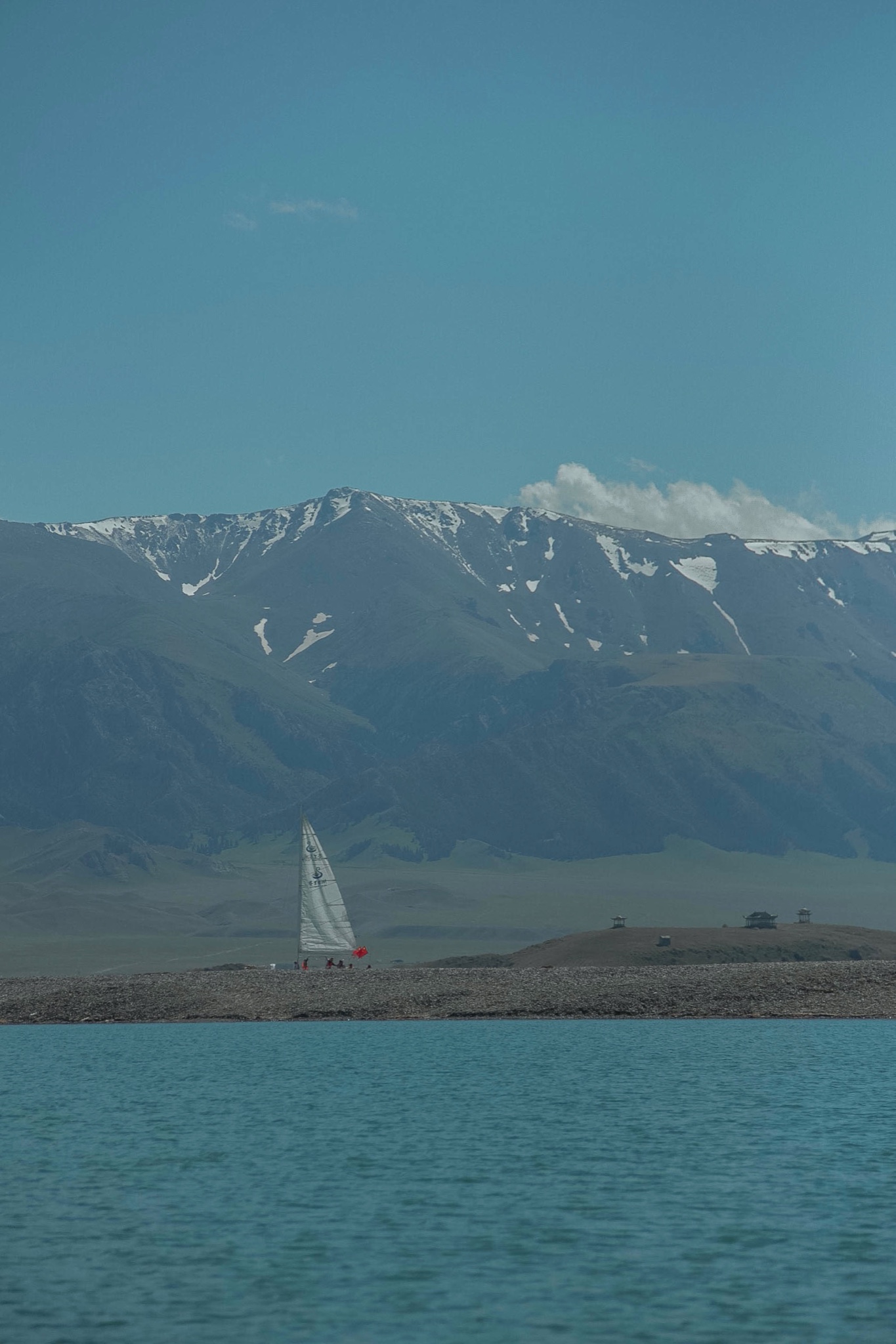 赛里木湖与我去过的其他好多景点不一样,检票一进去就能立马看到远处水蓝色的赛里木湖,在阳光下泛着波光,两艘小帆船在湖面不经意的飘着。