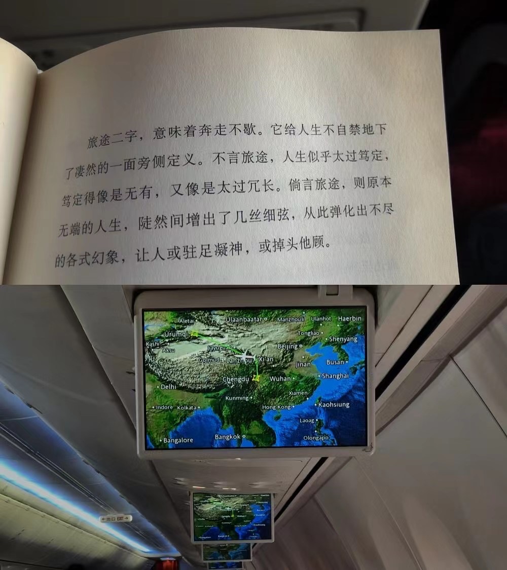 两位好友在飞机上都在迷迷糊糊的睡着,而我因旅途的初始总是有点小兴奋睡不着。断断续续看着朋友带来的书《理想的下午》。也时不时抬头看看飞机飞到了哪里。