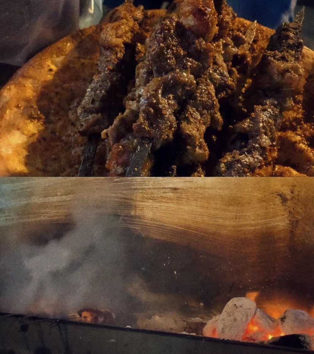 12点的夜市羊肉串。虽已疲惫不堪,但还是及其容易满足的说说笑笑吃着在飞机上许下的愿望,就是落地能一口羊肉串一口葡萄。虽坎坷,这不,也实现了嘛。