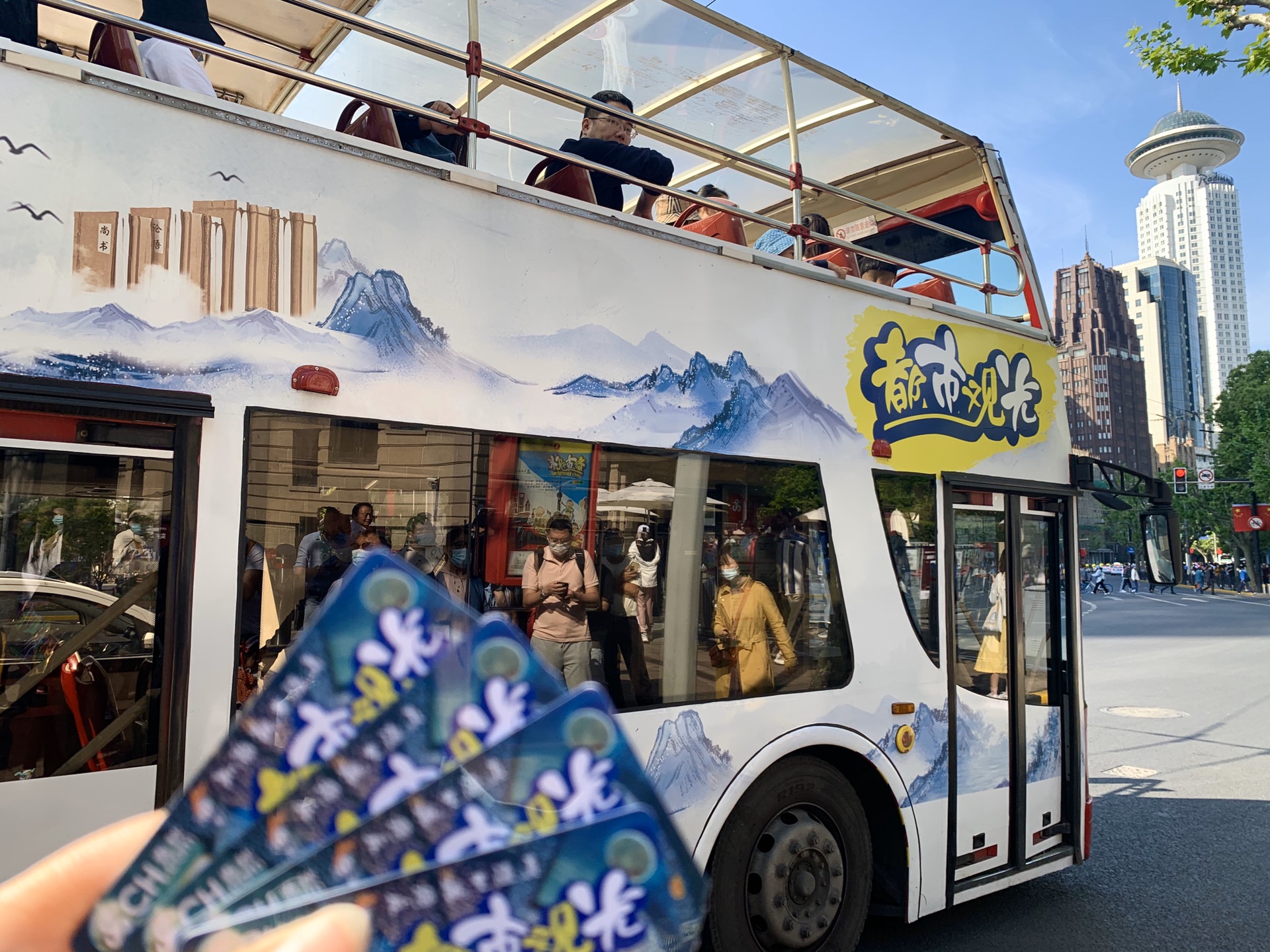 就这样观光车载着我们在外滩、豫园逛了一圈,如果想去其他景点,也可以换乘其他观光车,如果你一直坐着不下车也可以,车票24小时都有效。