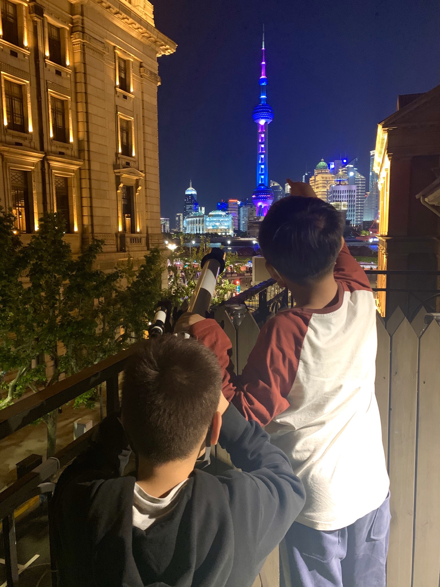回到外滩的家中,这时的黄浦江两岸灯光璀璨~橘色、黄色、橙色的灯光打在万国建筑群上,金碧辉煌,流光溢彩;玫瑰红、蓝色、金黄色的灯光打在陆家嘴摩天大楼上,美轮美奂,璀璨夺目,这是历史与时代的对话。