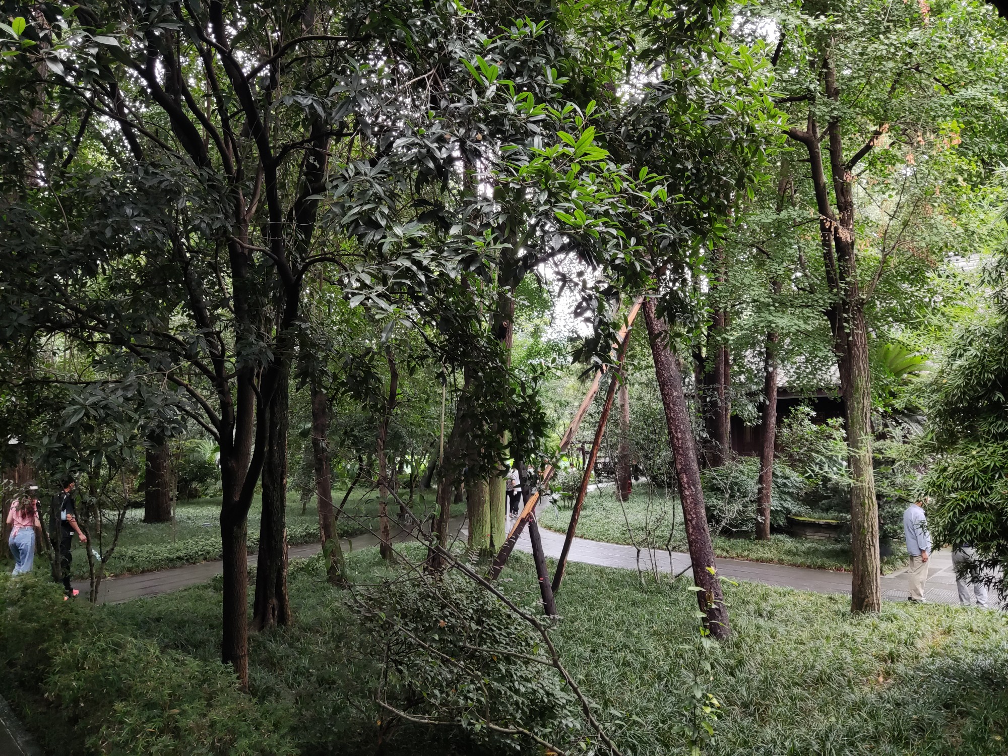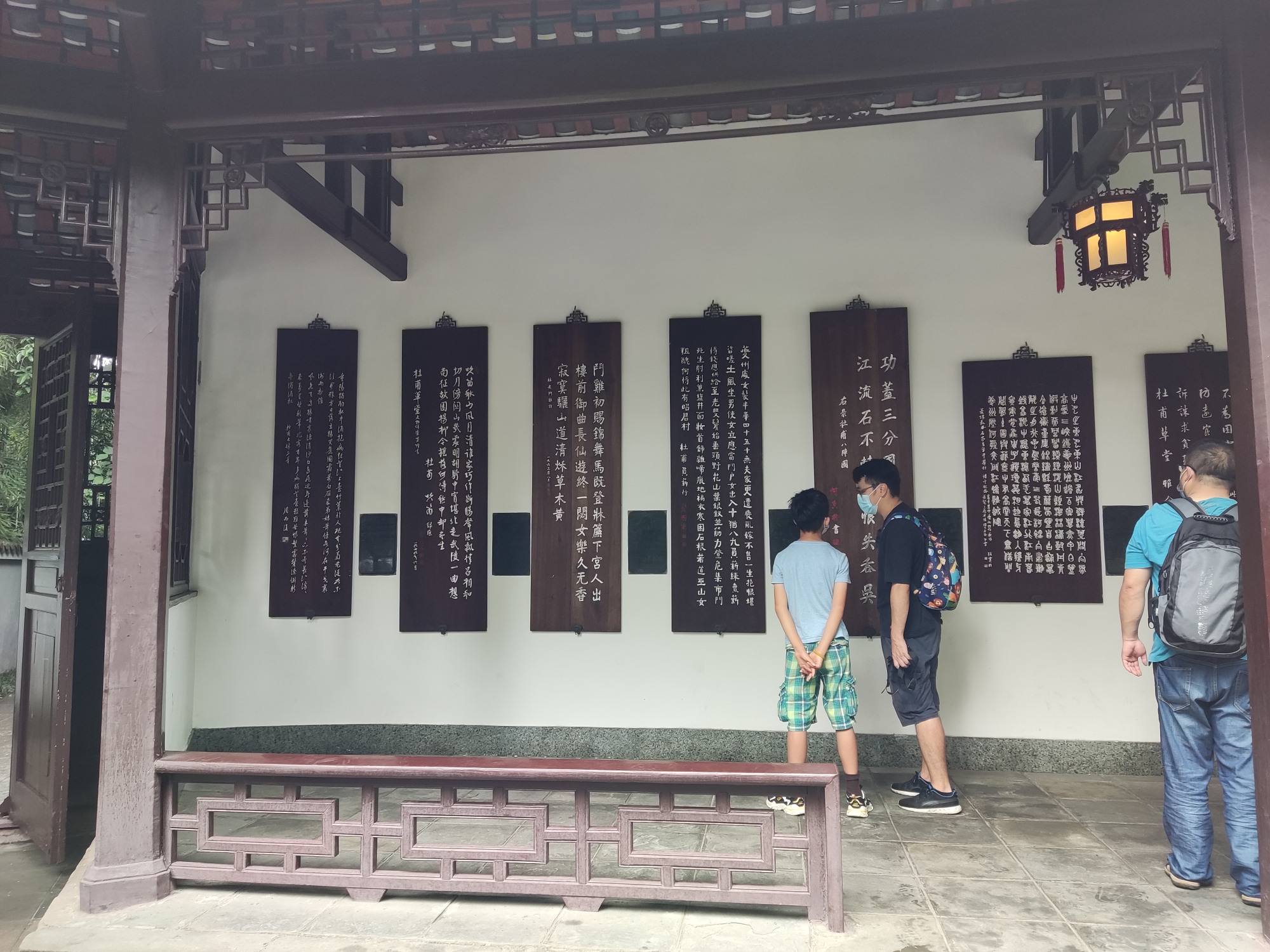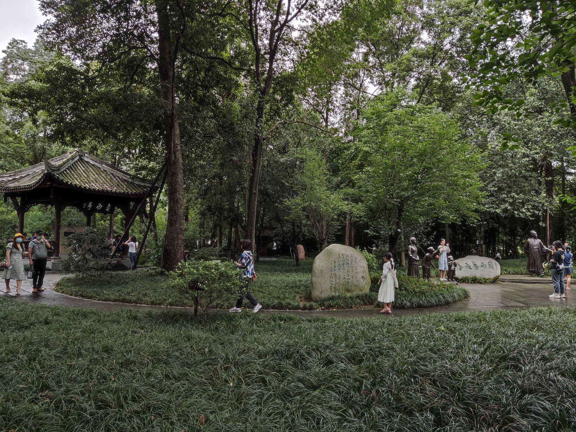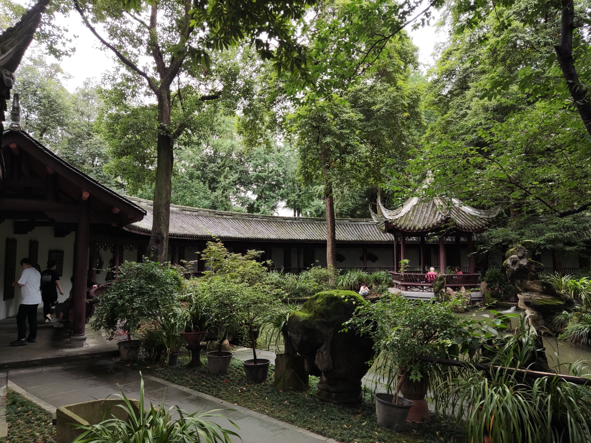 先到了杜甫草堂。人不少。所谓杜甫草堂,如今就是公园啊,肯定比过去杜甫住宅的占地面积大很多吧!当年老杜住宿条件具体咋样?高楼修太多,如今哪里看得见"窗含西岭千秋雪"……